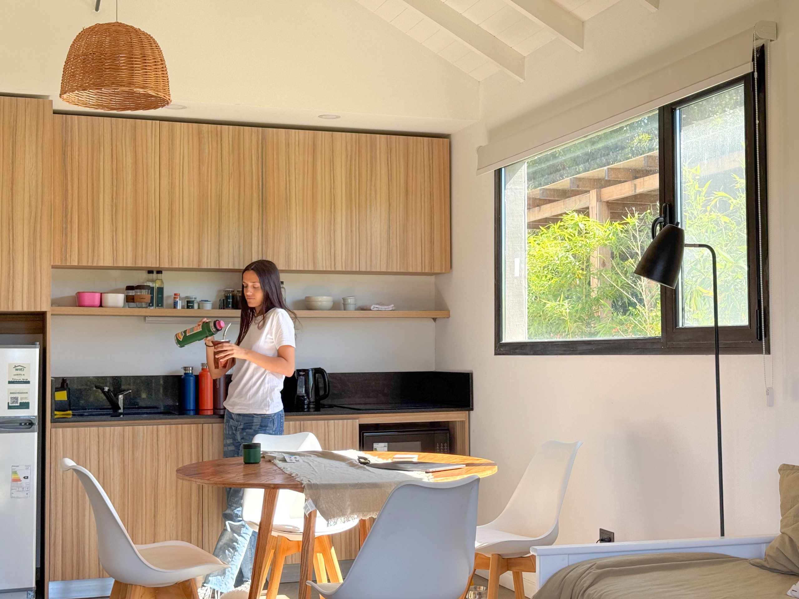 La casa tiene capacidad para hasta 4 personas y cuenta con un dormitorio con cama doble, un baño completo y un living-comedor con cocina integrada. Además, dispone de un sillón cama en el living, aire acondicionado frío/calor y mosquiteros.
