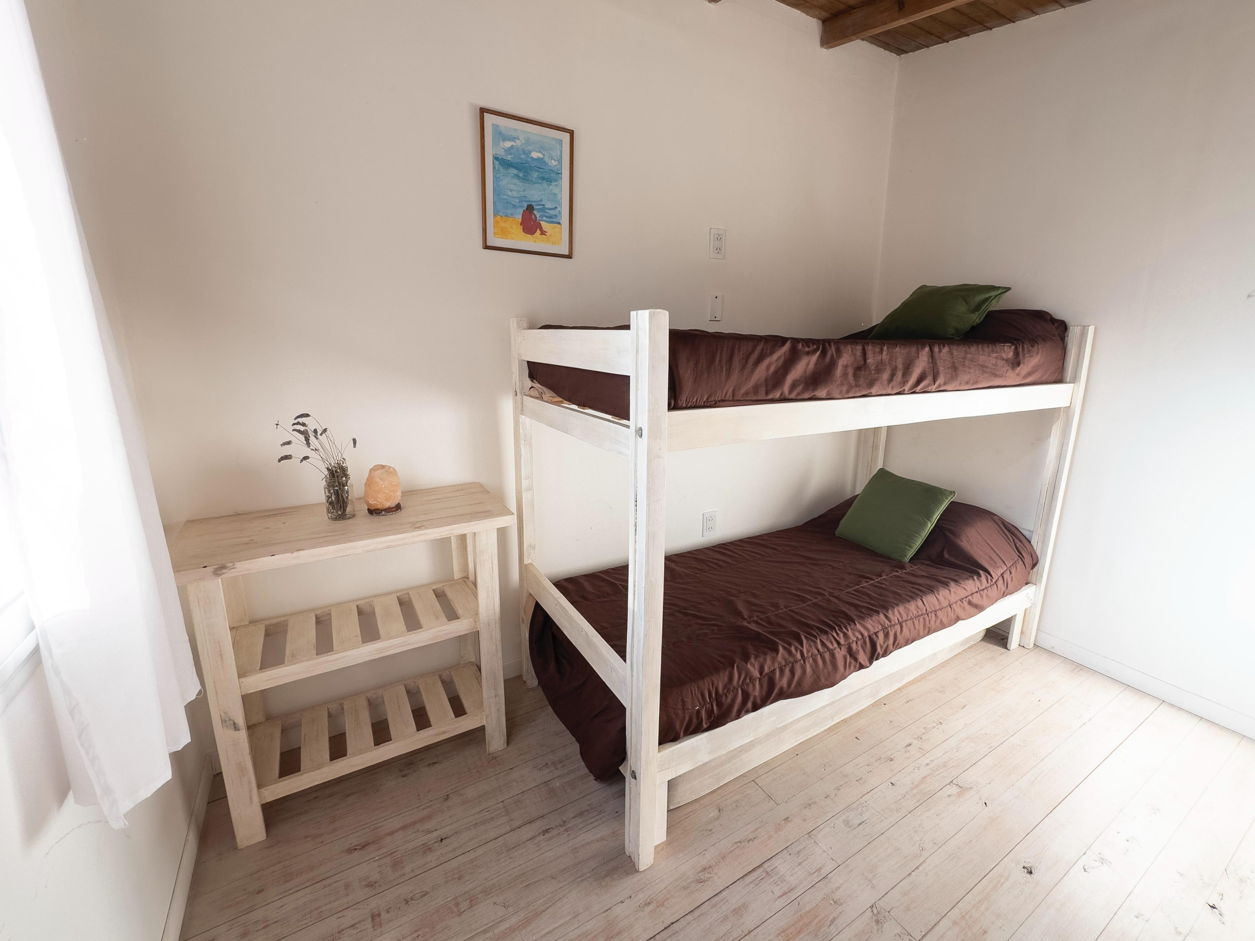 La propiedad cuenta con dos dormitorios: el principal con cama matrimonial y el segundo con cama cucheta. Dispone de un baño completo con ducha, y un luminoso living comedor con cocina integrada, diseñado para brindar comodidad y practicidad en un ambiente cálido y relajado.