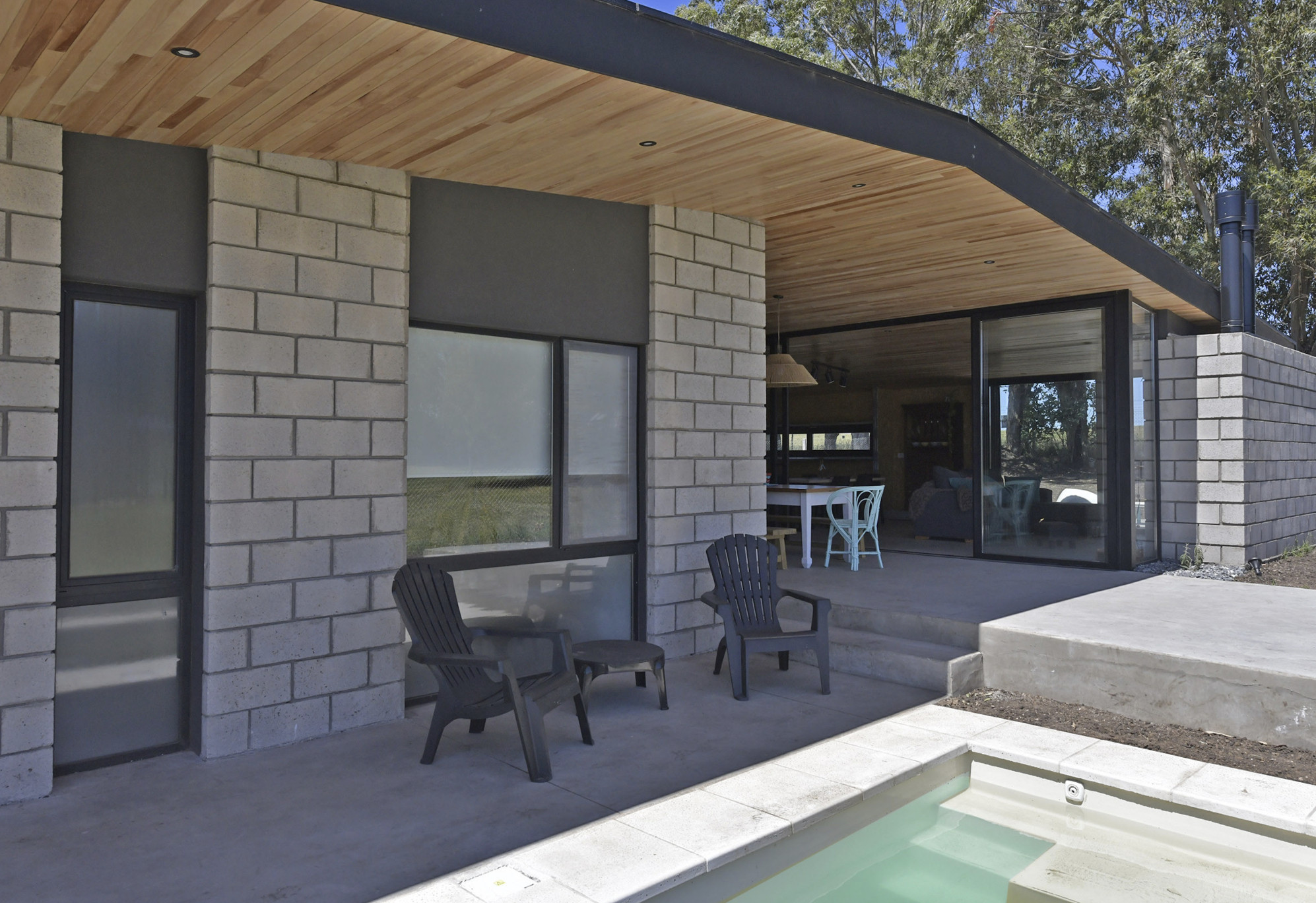 La casa cuenta con 3 dormitorios : el principal en suite con vestidor y salamandra en el mismo dormitorio (y no hablar de la vista espectacular al campo). El segundo dormitorio cuenta con 2 camas individuales y el tercero con cama estilo “cucheta”, más pequeño pero igual de cómodo y luminoso. Además, una cocina integrada con barra, comedor y living con smart TV y salamandra, y una galería techada con parrilla bien integrada a la casa.