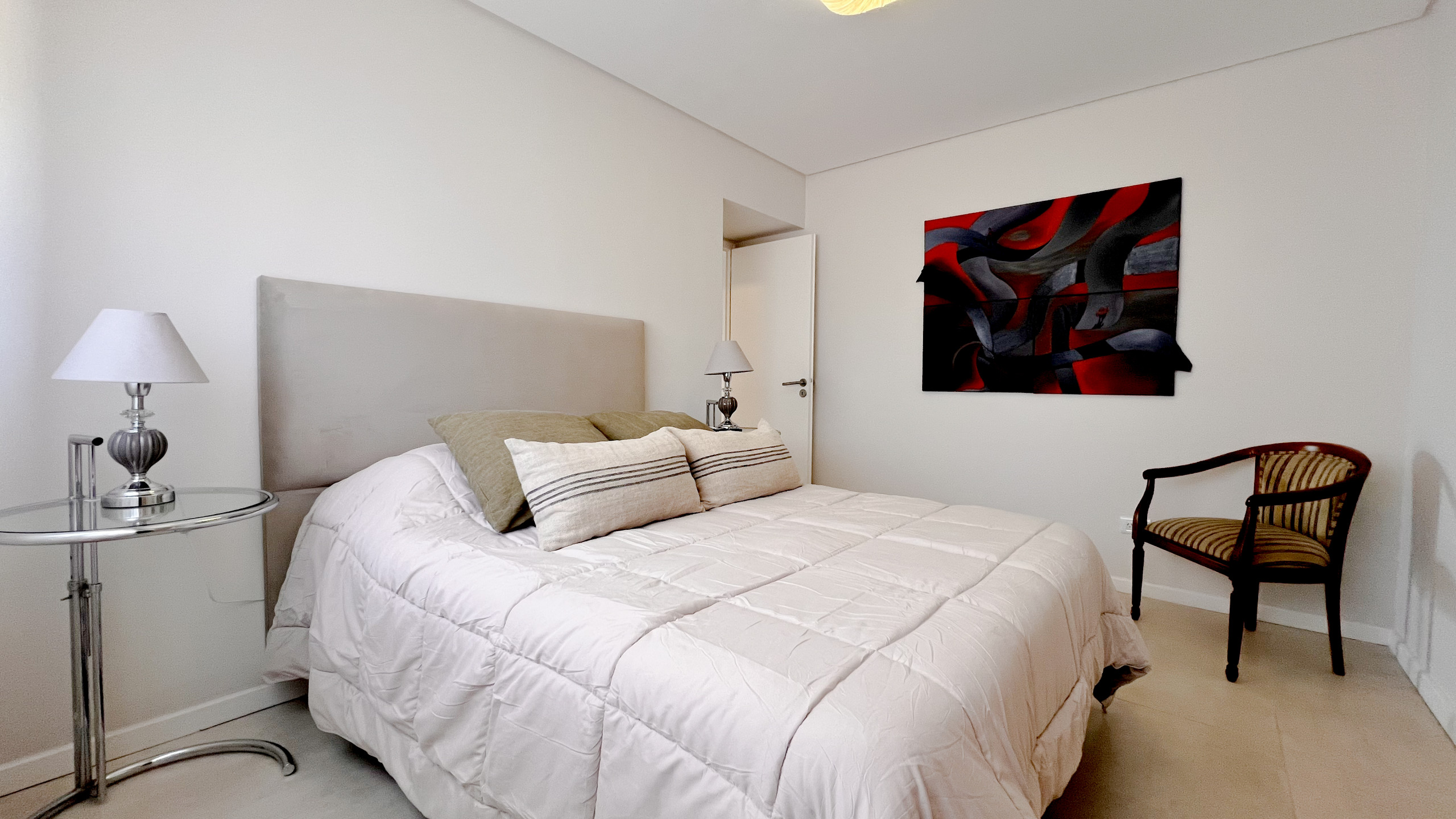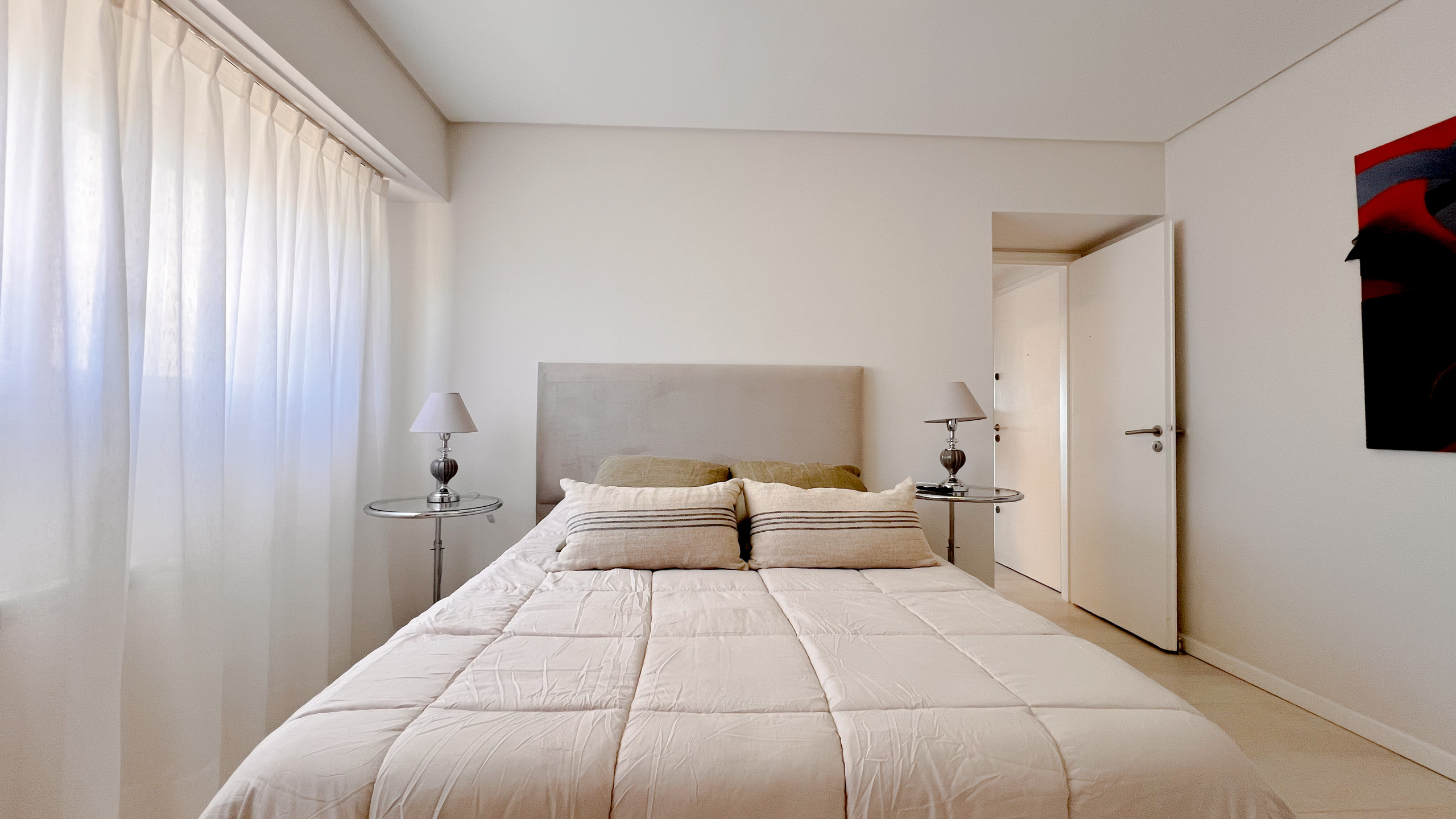 Con capacidad para hasta 5 personas, el departamento cuenta con tres dormitorios y tres baños completos, lo que garantiza comodidad, privacidad y una excelente distribución tanto para familias como para grupos de amigos. El dormitorio principal dispone de cama matrimonial y baño en suite, el segundo dormitorio cuenta con dos camas simples y el tercero con una cama simple, todos con muy buena luz natural y espacios bien resueltos.