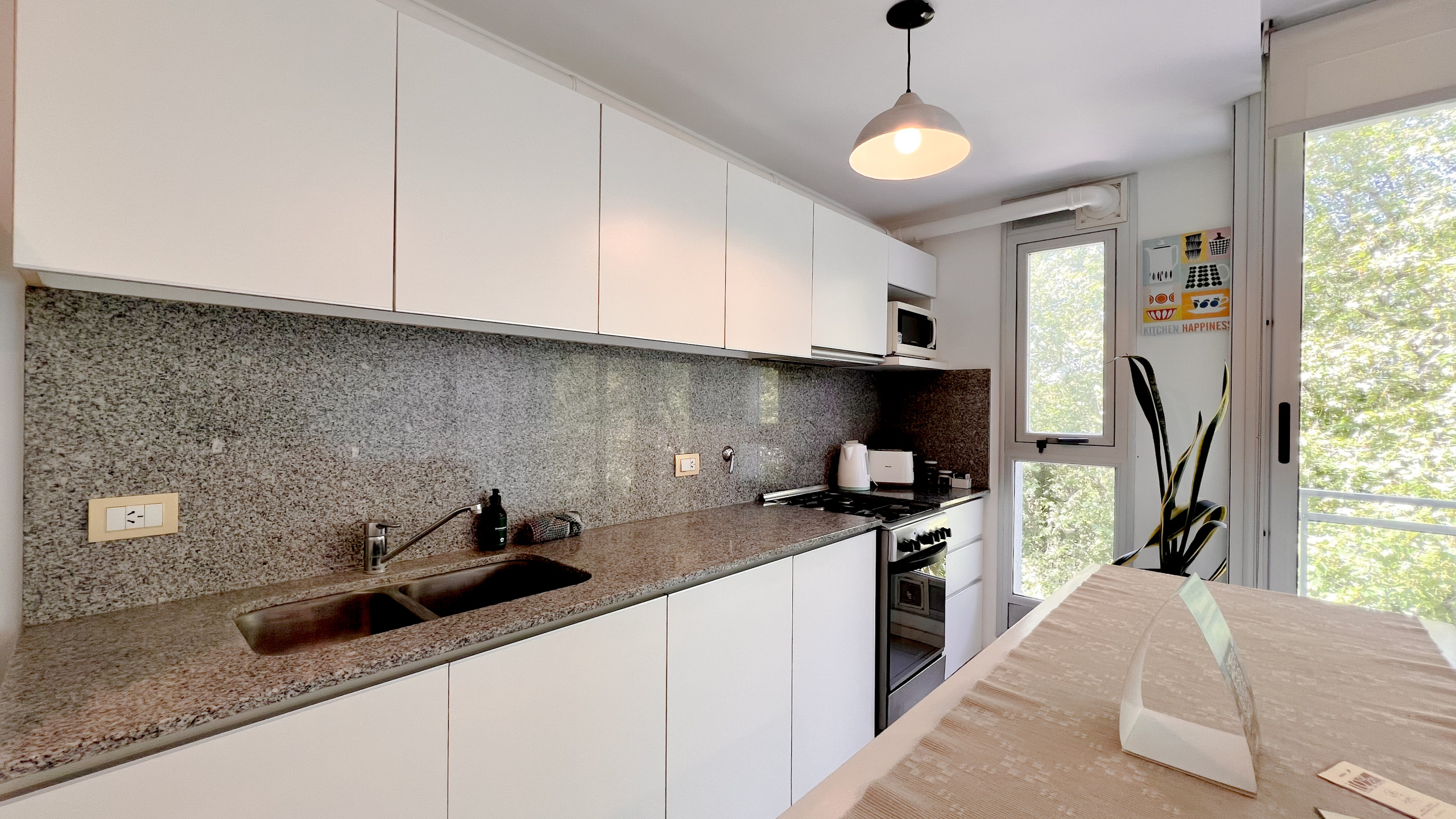 La cocina fue completamente modernizada y está equipada con electrodomésticos de primera línea, además de incluir lavarropas. El baño es completo, práctico y en excelente estado.