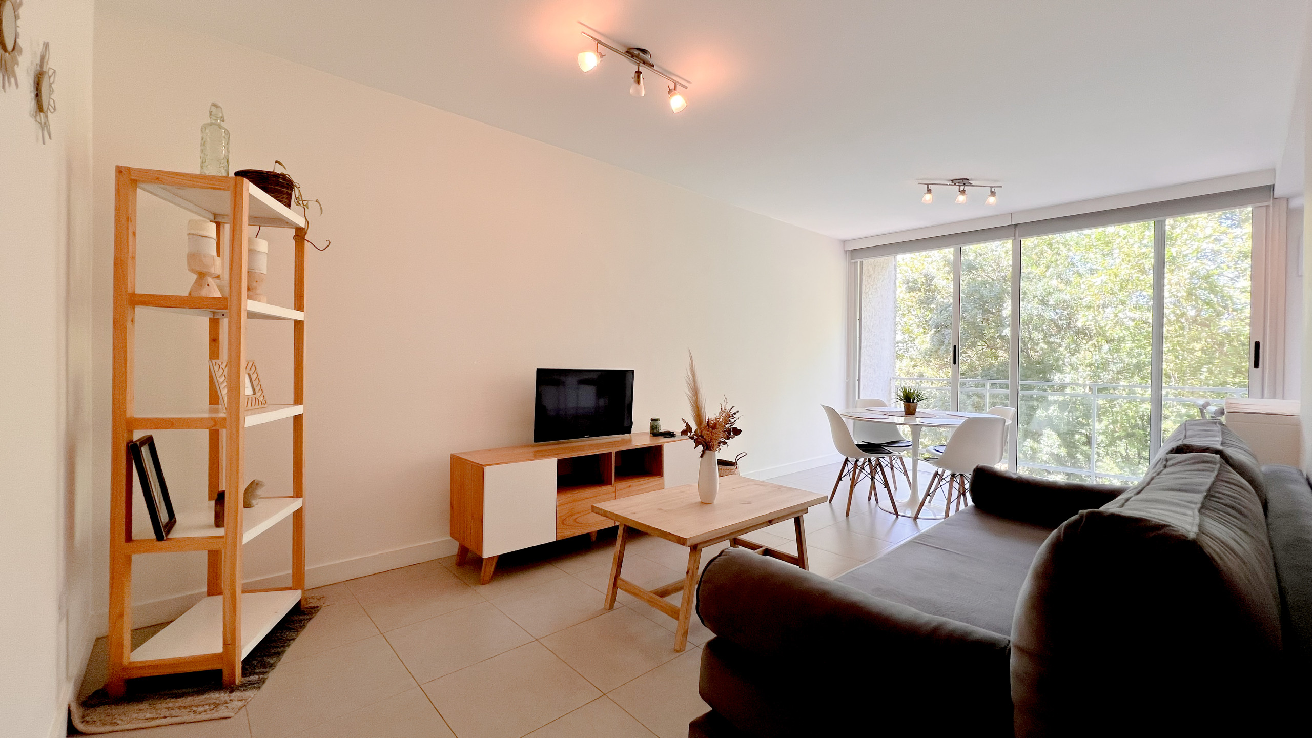 Depto Al está en frente de una plaza del barrio San Carlos, por eso nos regala mucho verde desde la ventana del living. Es un depto totalmente equipado para estadías cortas y largas. Es práctico, porque cuenta con un dormitorio pero con dos camas muy cómodas en el living que funcionan como sillón y permite que en el departamento entren cómodamente 4 personas. Lo eligen familias o amigos que no requieran tanta intimidad al compartir el espacio común del living. Con cocina integrada, barra desayunadora, balcón y 1 baño completo. Además, vas a contar con cochera dentro del edificio para entrar y salir rápidamente y sistema de alarma en el edificio sin preocuparte por nada.