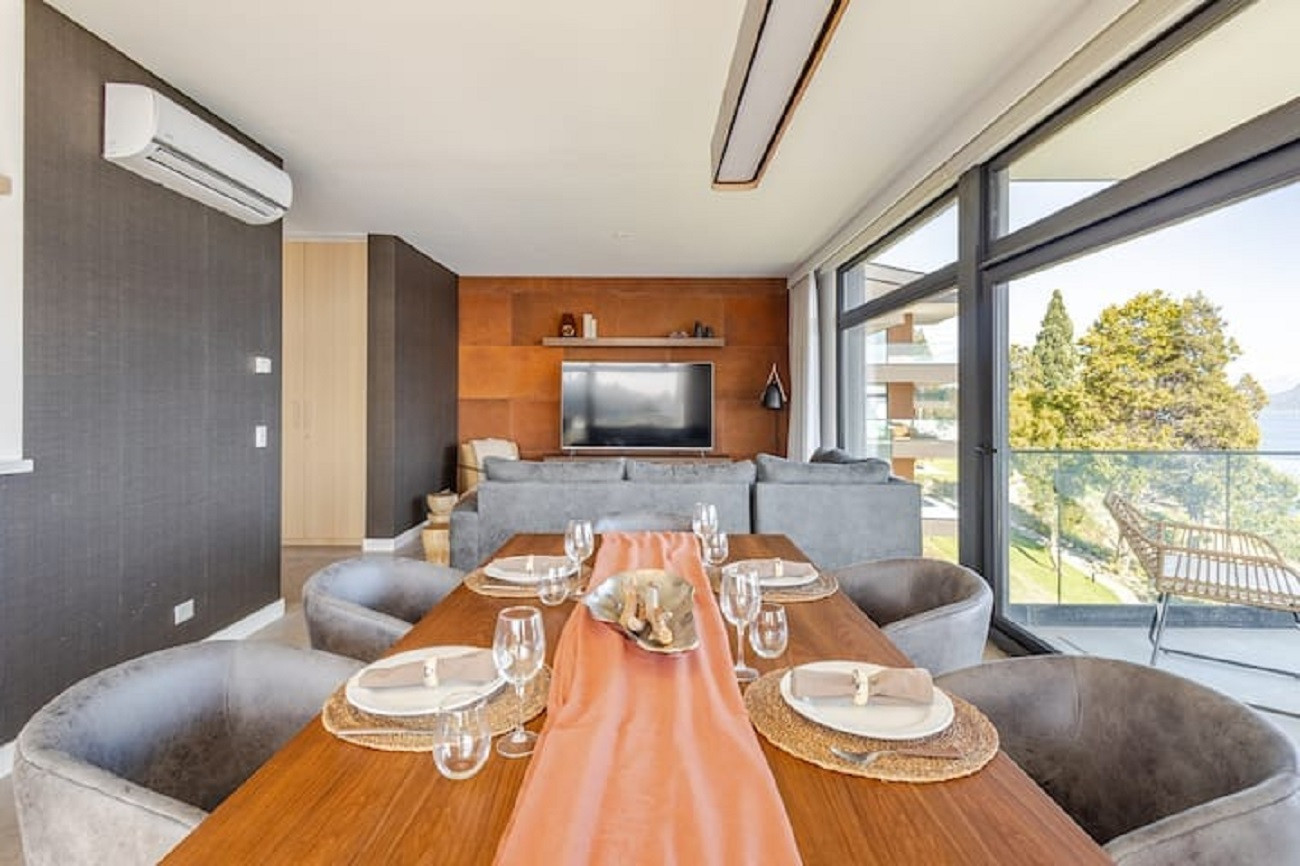 Este elegante departamento en segunda planta, ubicado en un exclusivo complejo frente al lago Nahuel Huapi, ofrece todo lo necesario para una estadía inolvidable en Bariloche. Ideal para quienes buscan confort y momentos únicos en contacto con la naturaleza patagónica.