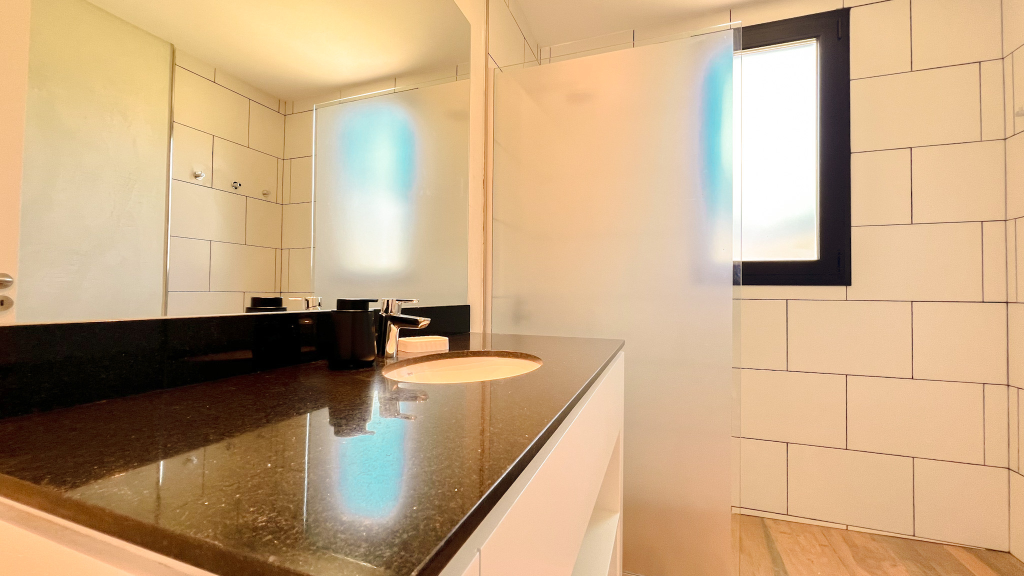 También disponen de un baño completo con ducha y una cocina integrada, totalmente equipada para que no falte nada durante la estadía. El living es ideal para relajarse después de un día de playa, y además cuentan con espacio para guardar tablas de surf.