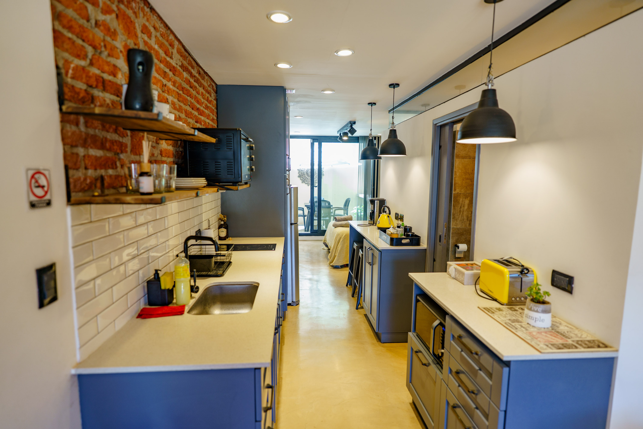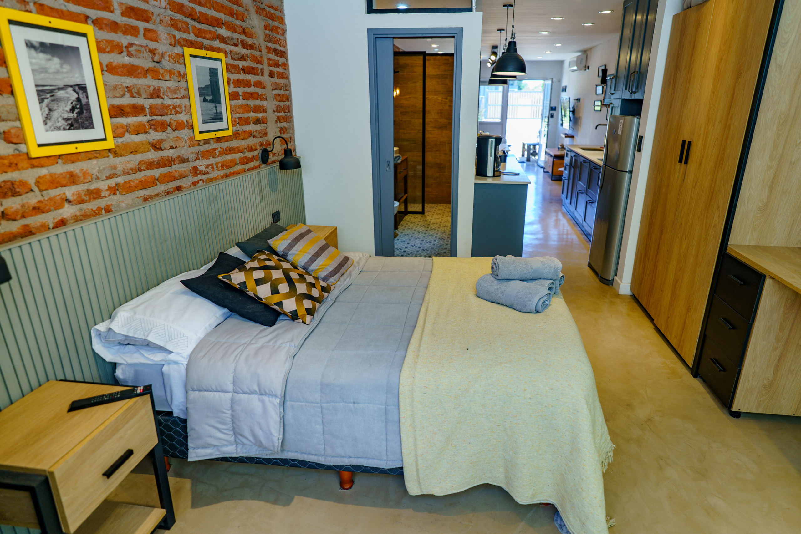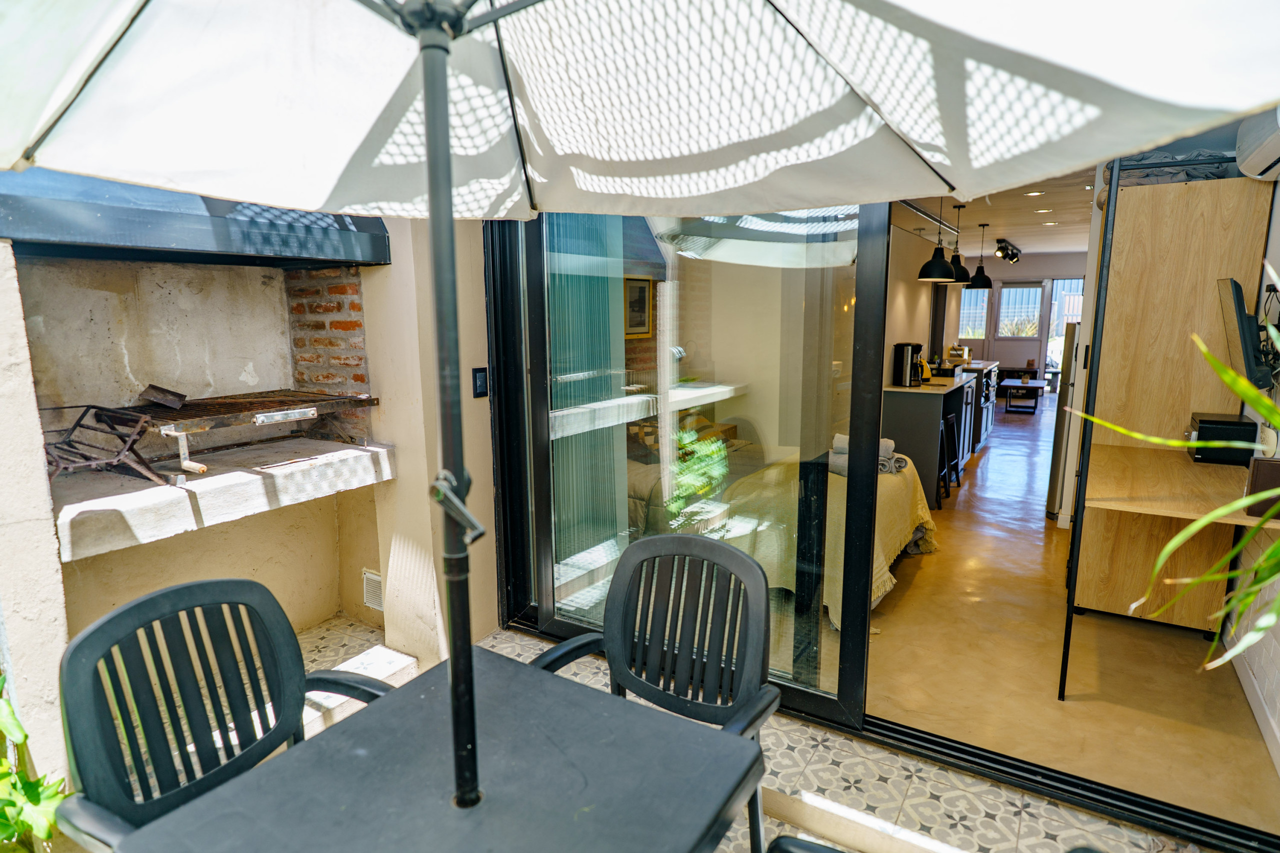 Loft Luna Roja cuenta con un living comedor con cocina integrada, equipado con aire acondicionado y un sofá cama doble que suma dos plazas más para descansar o relajarse. La cocina tiene todo lo necesario para resolver almuerzos, cenas y desayunos sin complicaciones. El dormitorio principal ofrece cama doble, TV Smart, aire acondicionado frio calor y ventanales que conectan con el patio exterior, donde te espera la parrilla y muebles para disfrutar al aire libre.