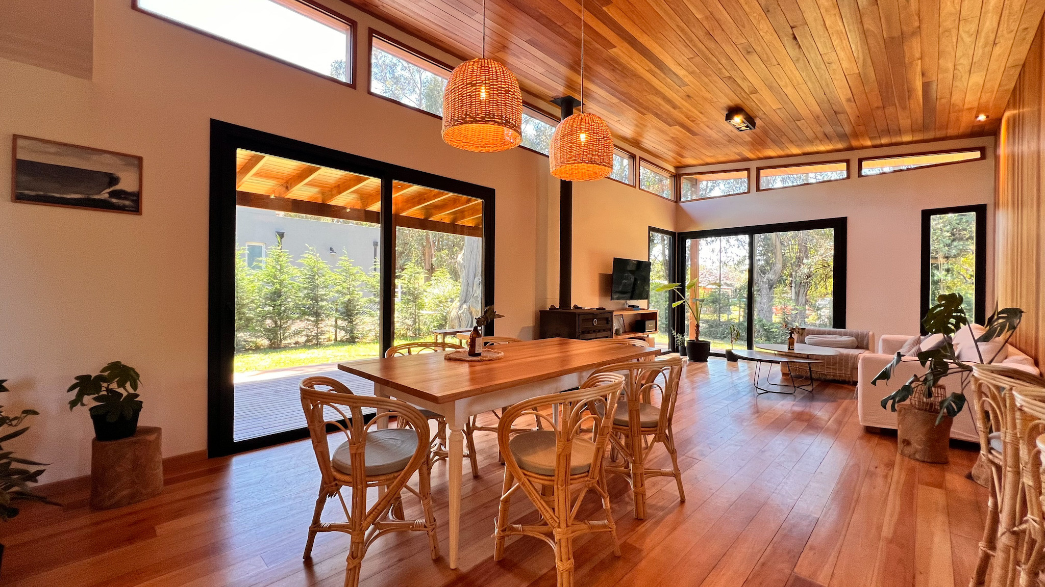 Casa Pancha nos invita a hacer la plancha y por sobre todas las cosas: descansar. Esta casa totalmente de madera está pensada para 4 personas y se ubica en el Barrio Cerrado Barrancas de San Benito. El barrio se encuentra a la altura de Lobos Chapadmalal y cuenta con seguridad 24 hs, amenities como canchas de tenis y fútbol para uso de los huéspedes, juegos para chicos y espacios abiertos y lleno de verde con unos atardeceres espectaculares que siempre recomendamos acercarnos al arroyo del barrio para verlo.