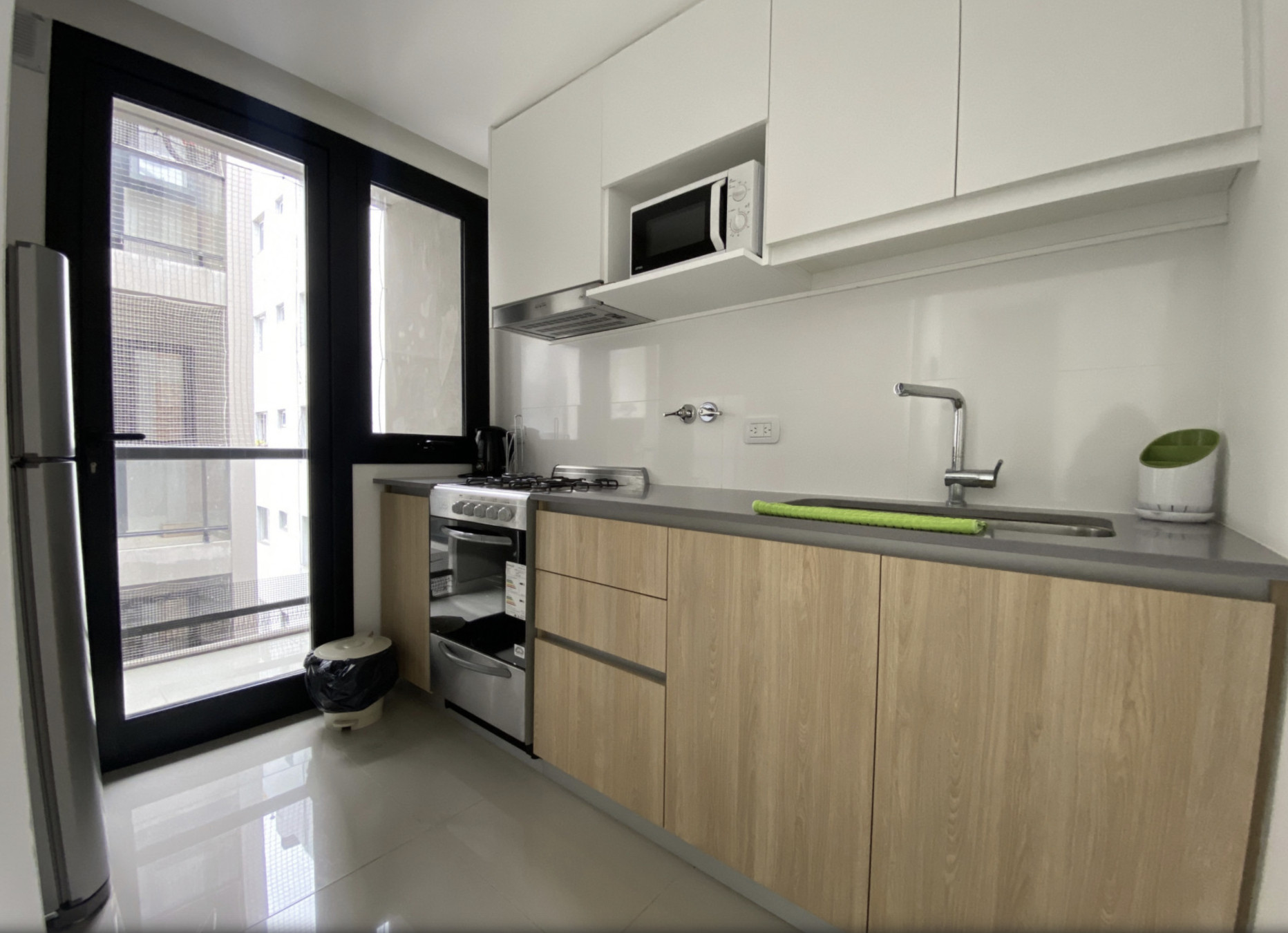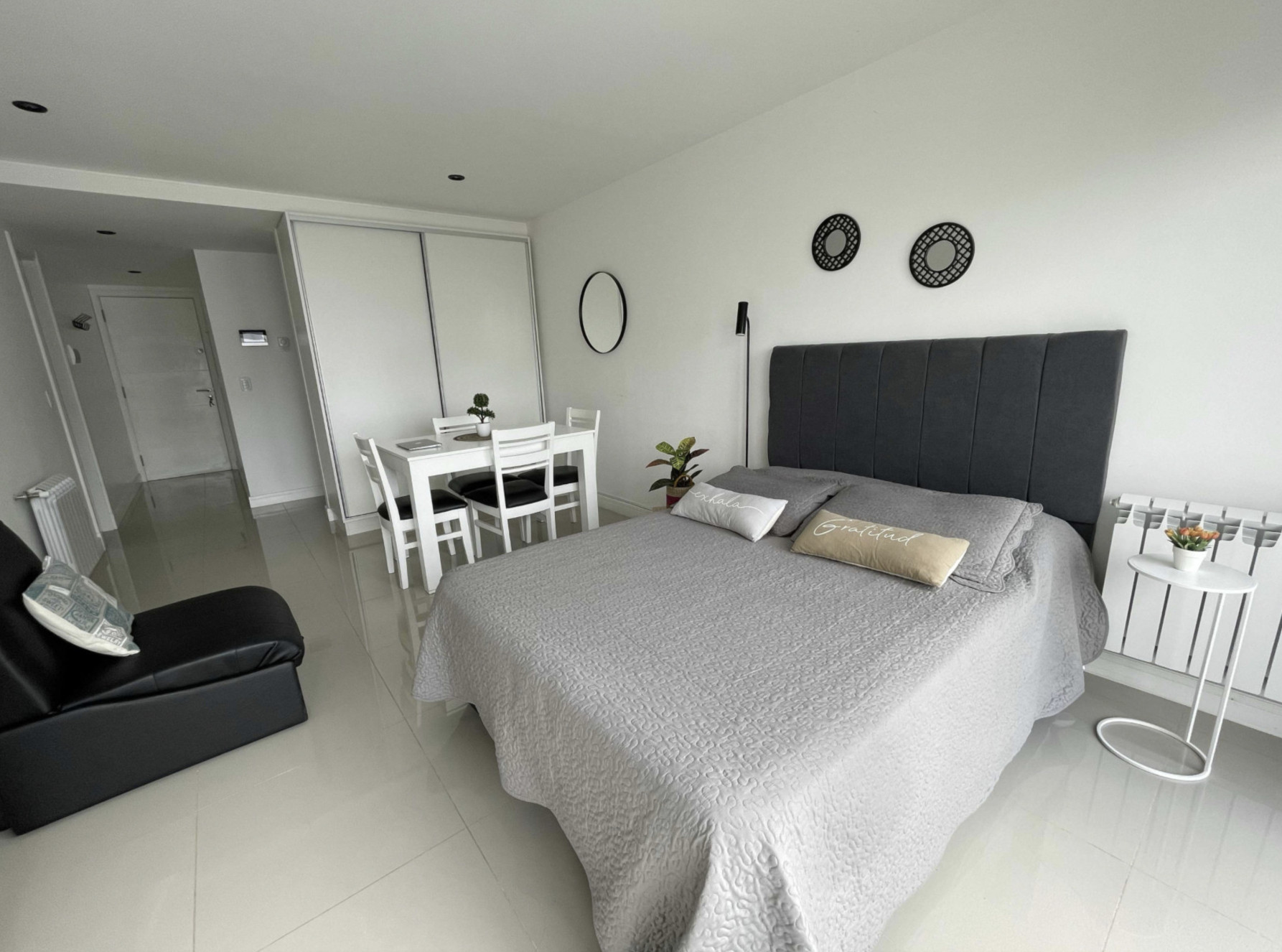 Um estúdio localizado no coração da cidade. Com 42 metros quadrados, possui cama de casal e um sofá-cama de uma praça. É ideal para um casal ou casais com uma criança. É espaçoso, com varanda para a rua, luminoso e totalmente equipado para que a estadia seja perfeita.