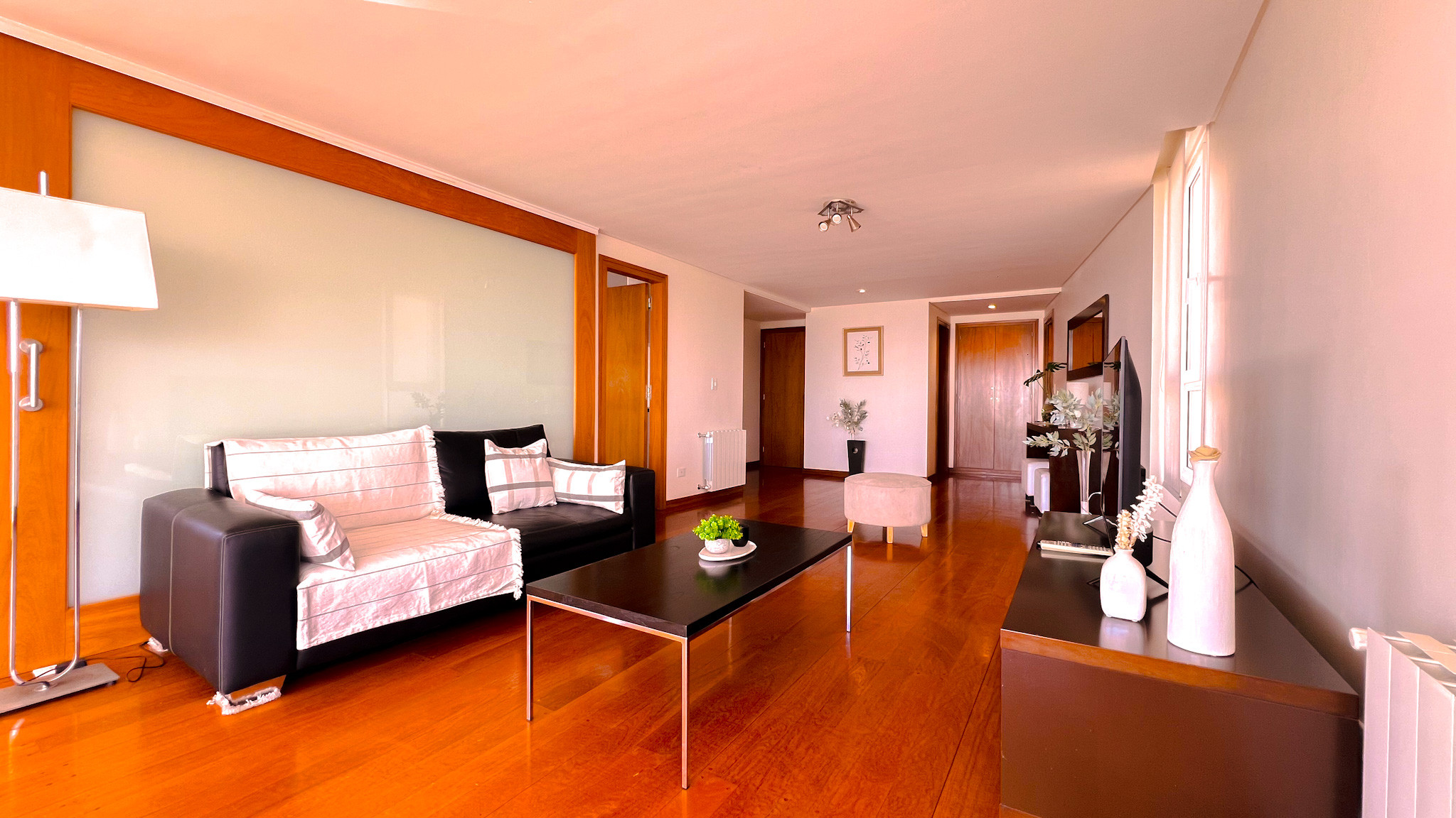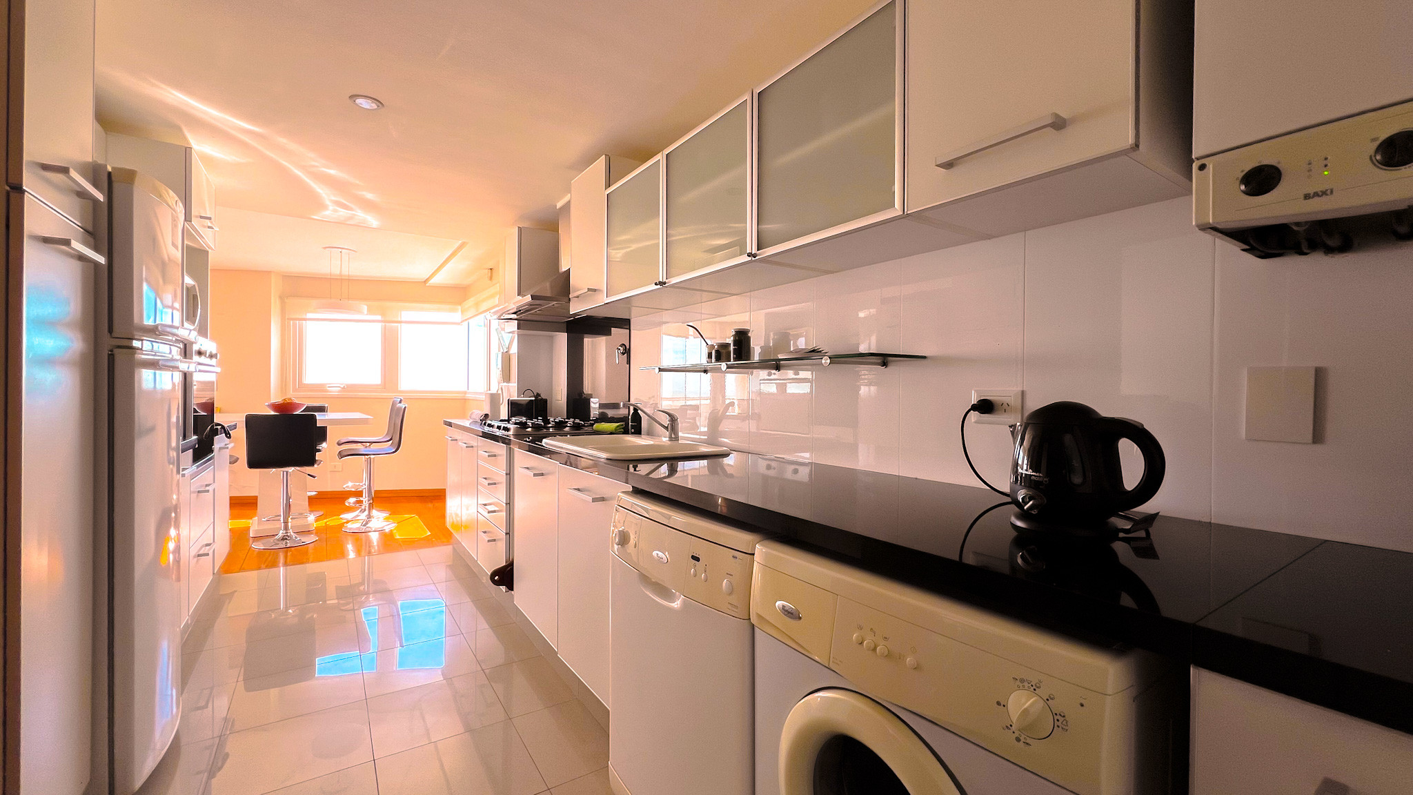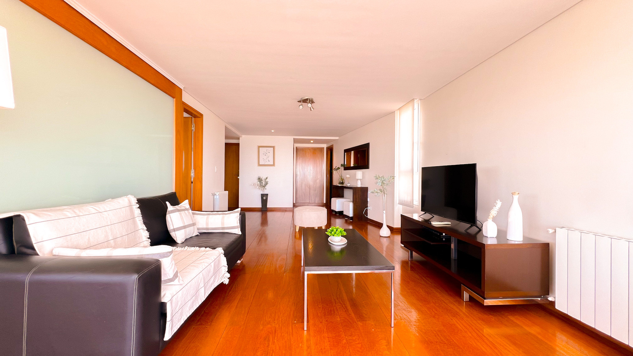 O departamento está pensado para estadias confortáveis e funcionais, com ambientes generosos e bem distribuídos. Conta com três quartos —todos com varanda própria—, dois casas de banho completas mais toilette, sala de estar e jantar espaçosa, cozinha totalmente equipada e garagem incluída. É um espaço ideal para famílias ou grupos que procuram conforto e sentir-se como em casa desde o primeiro dia.