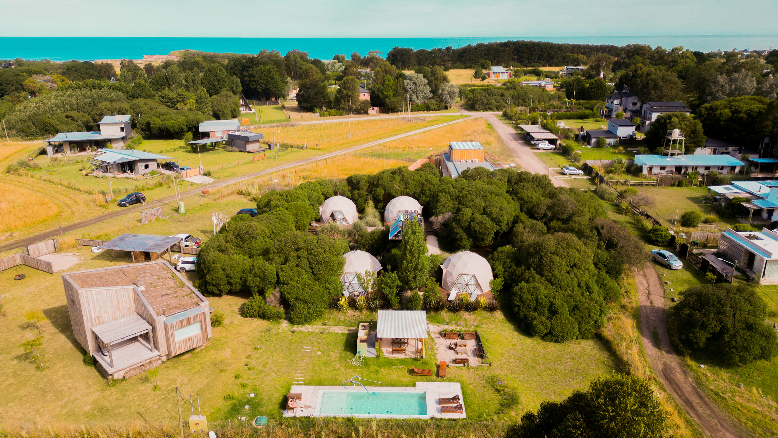 Aikén Chapa é um espaço relaxado que também te convida a viver em comunidade com algumas comodidades de uso comum como fogueira, piscina, churrasqueira e espaço de mesa comunitária sob sombra. Estarás muito perto da praia mais bonita de Chapadmalal: Cruz del Sur e Redondo, permitindo-te ir a pé desde o domo até à praia durante todo o ano.