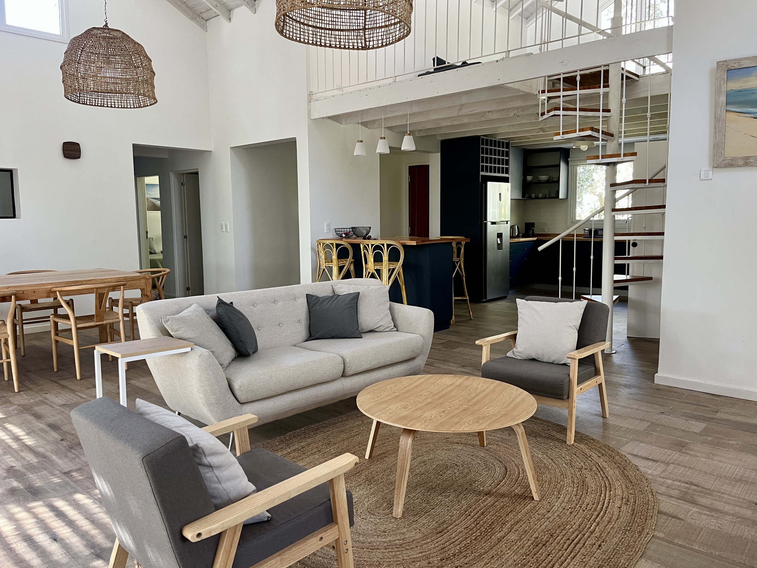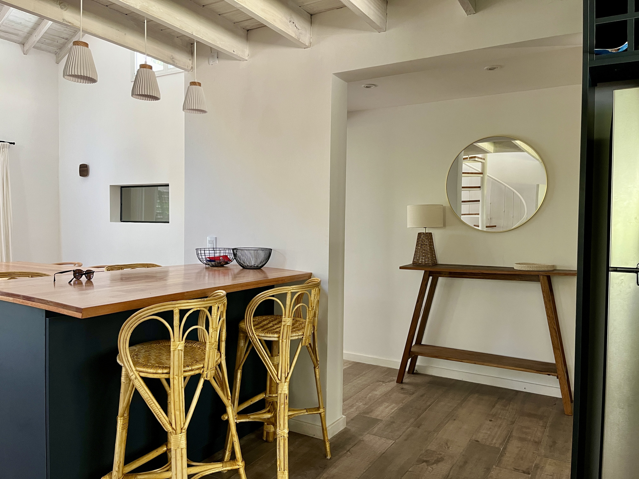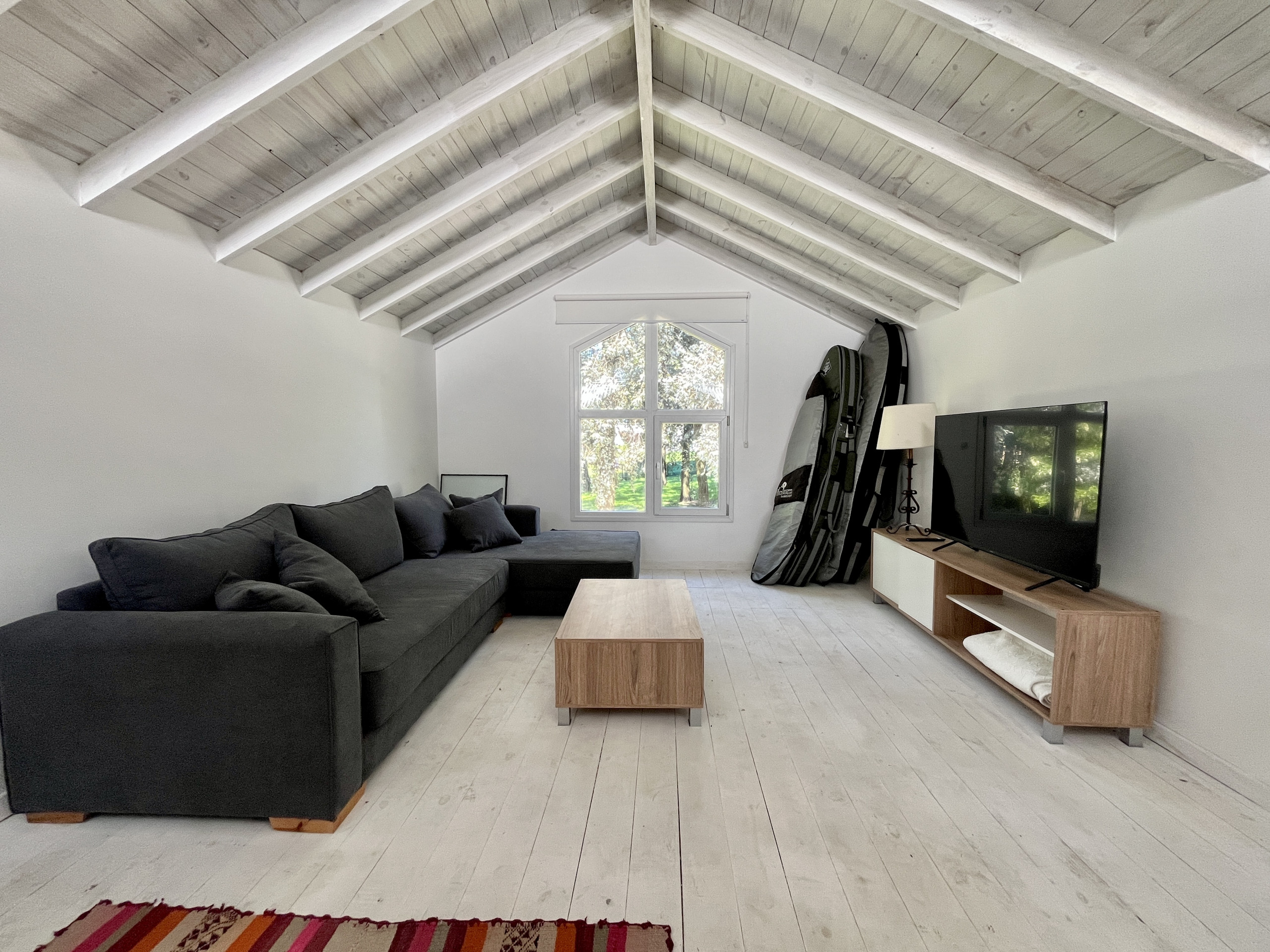 É uma casa super luminosa e espaçosa com capacidade para 6 pessoas. Conta com uma sala de estar e jantar com cozinha integrada, e uma escada que leva a um mezanino tipo segunda sala de estar, perfeito para relaxar ou desfrutar com maior privacidade. Tem três quartos: o principal com cama de casal e casa de banho em suite, o segundo com duas camas individuais, e o terceiro também com duas camas individuais. Além disso, dispõe de outra casa de banho completa com chuveiro e banheira. Lá fora, vai encontrar churrasqueira e espaço de estacionamento coberto.