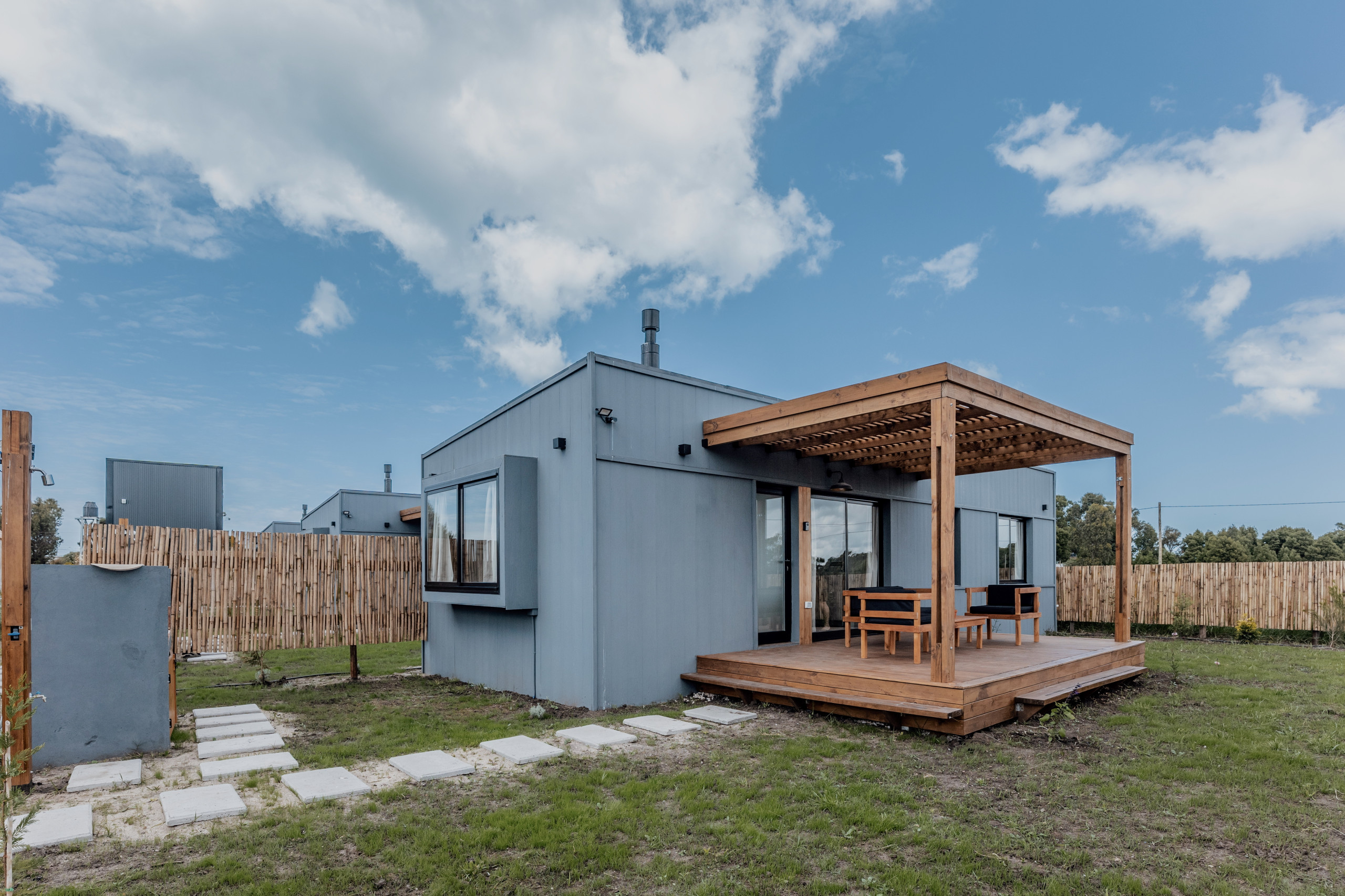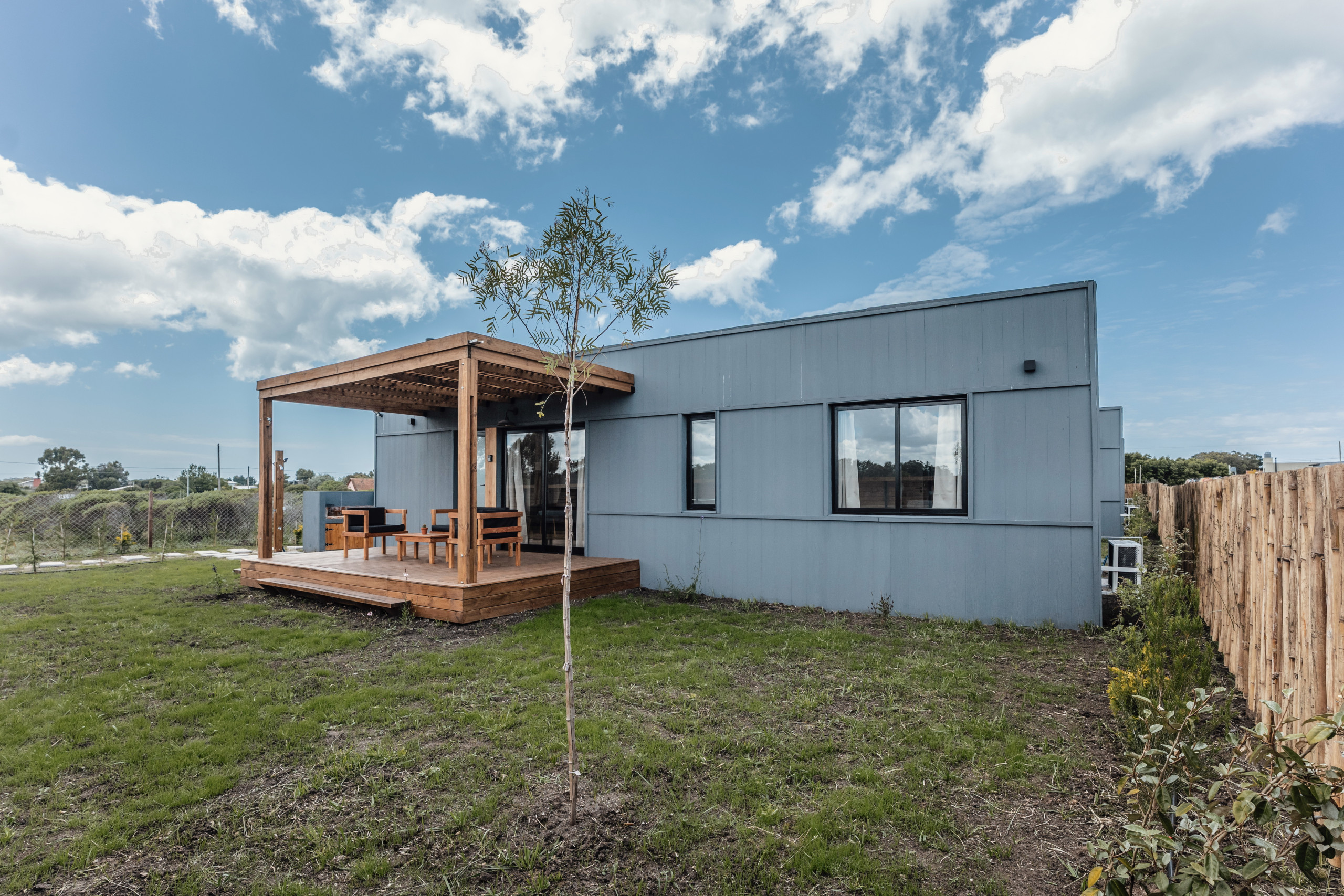 No exterior, cada unidade tem a sua galeria privada, jardim com churrasqueira e muito verde em redor para desfrutar durante todo o ano. É perfeito para famílias ou grupos de amigos com mais de 25 anos que querem viver Chapadmalal a sério!