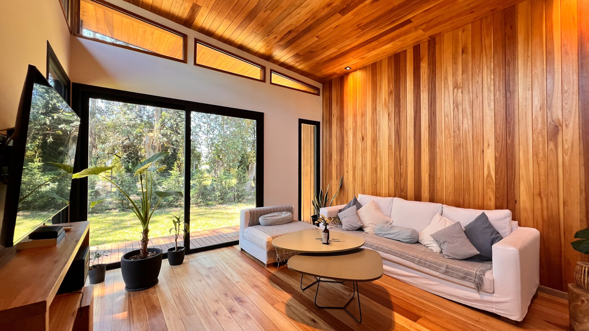 Cada unidade tem uma sala de estar e jantar luminosa com cozinha integrada, equipada com tudo o necessário para receber até quatro pessoas. O quarto principal conta com cama de casal king e cada casa tem uma casa de banho completa com chuveiro e antecâmara, prática e funcional.