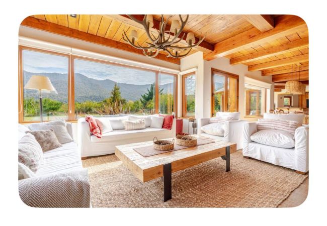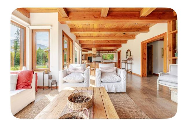 A casa em San Carlos de Bariloche tem 4 quarto(s) e capacidade para 8 pessoa(s). Alojamento de 250 m² confortável e muito luminoso, com vistas para a montanha. Encontra-se a 0 m do supermercado, 1 km do campo de Golf, 12 km da cidade, 13 km da estação de ski, 26 km do aeroporto e localizado numa zona ideal para famílias zone e num complexo residencial.Dispõe de jardim, mobiliário de jardim, máquina de lavar roupa, churrasqueira, lareira, cofre, aquecimento central, estacionamento ao ar livre no mesmo edifício, 2 Televisores.A kitchenette, de gás, está equipada com frigorífico, microondas, forno, congelador, máquina de lavar louça, louça/talheres, utensílios/cozinha, máquina de café, torradeira, jarro eléctrico e máquina de sumos.