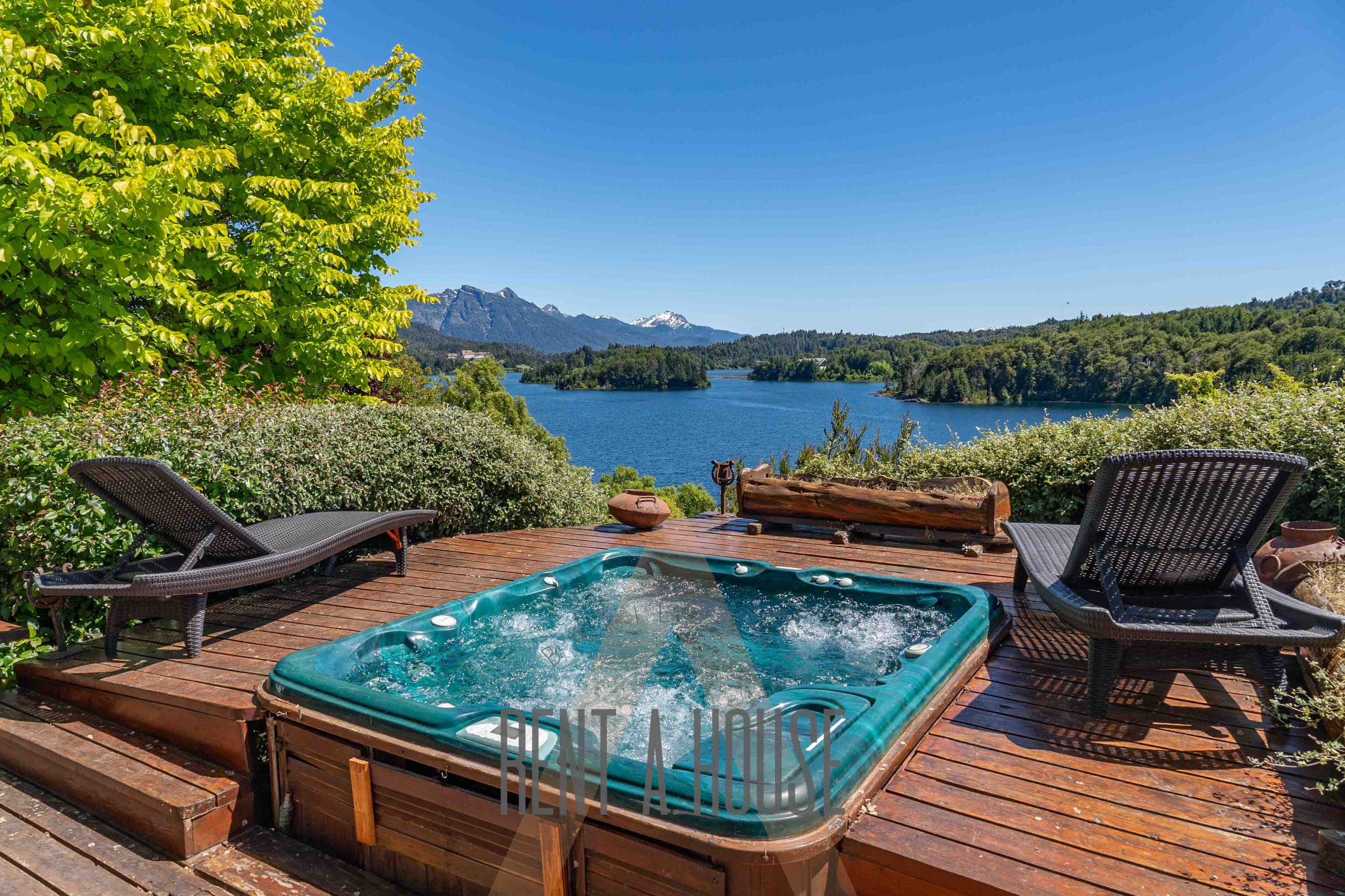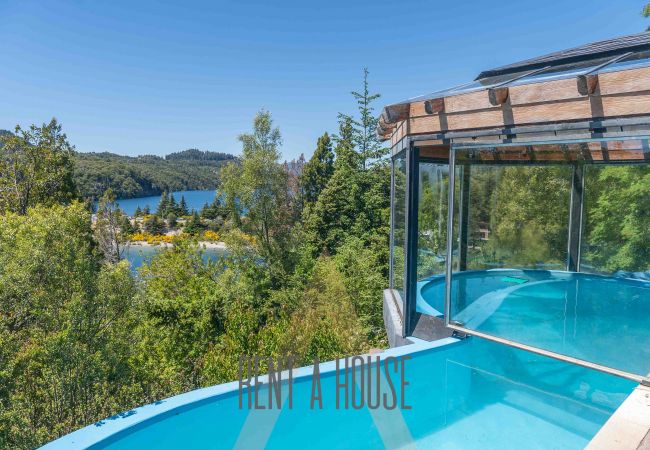 A casa em San Carlos de Bariloche tem 5 quarto(s) e capacidade para 11 pessoa(s) (máx. 10 adultos). Alojamento de 500 m², com vistas para a montanha e lago. Encontra-se a 13 km do supermercado, 23 km da estação de ski, 24 km da cidade, 32 km do aeroporto e localizado numa zona ideal para famílias zone.Dispõe de jardim, mobiliário de jardim, máquina de lavar roupa, churrasqueira, lareira, varanda, alarme, jacuzzi, aquecimento central, piscina climatizada privada, estacionamento ao ar livre, Televisão.A kitchenette, de gás, está equipada com frigorífico, microondas, forno, congelador, louça/talheres, utensílios/cozinha, máquina de café, torradeira e jarro eléctrico.