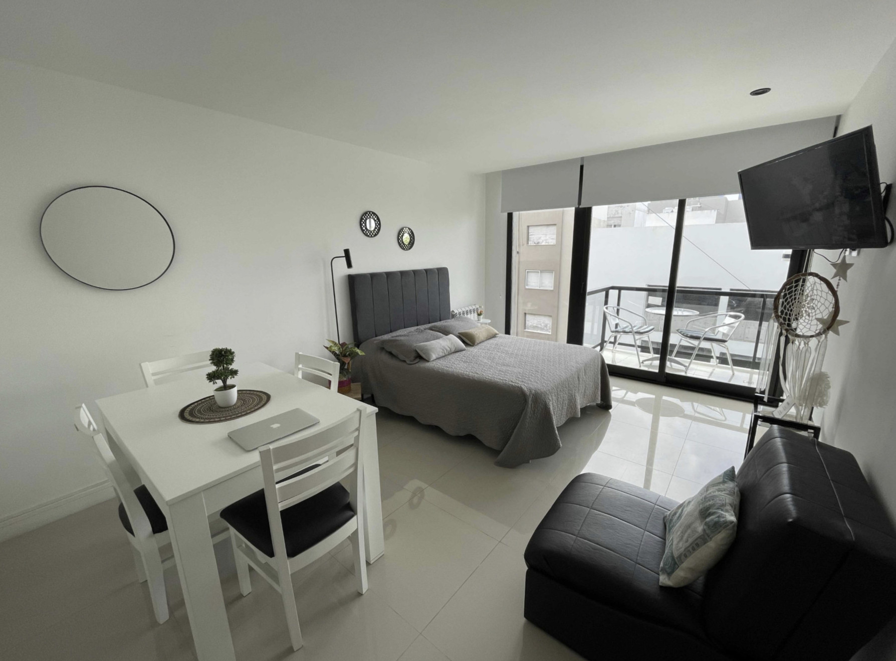 A studio located in the heart of the city. With 42 square meters, it features a double bed and a single sofa bed. It is ideal for a couple or couples with a child. It is spacious, with a balcony facing the street, bright and fully equipped to make your stay perfect.