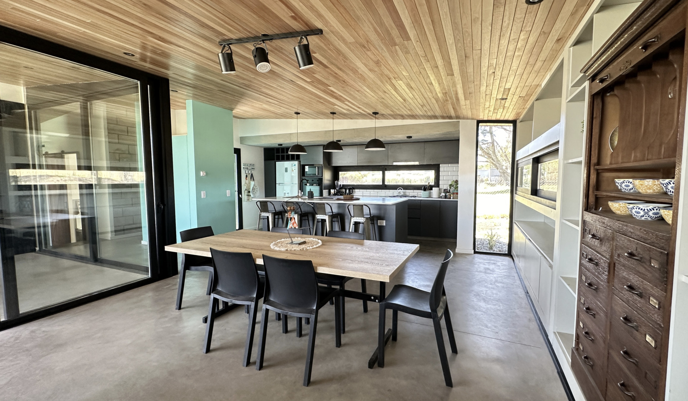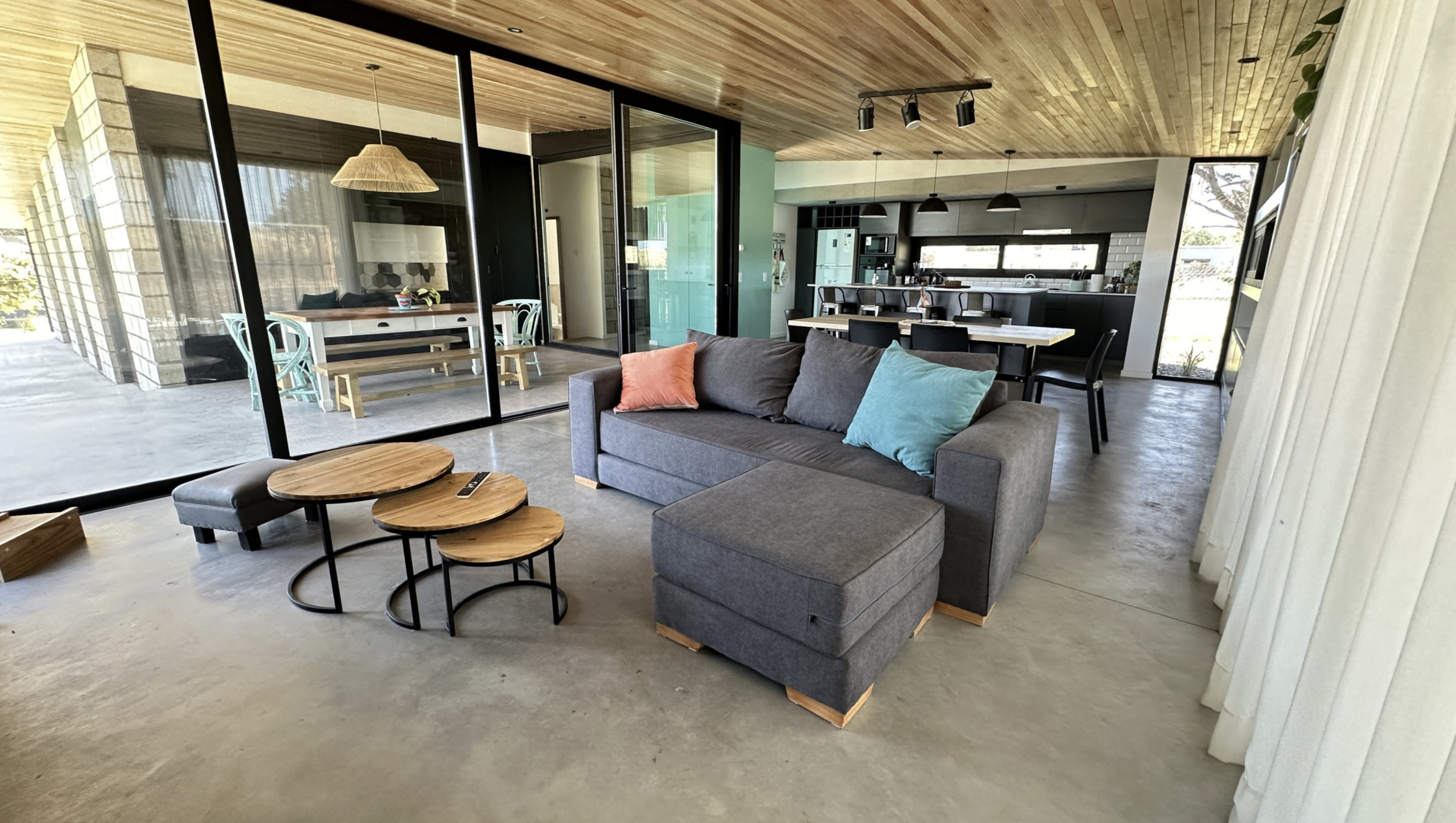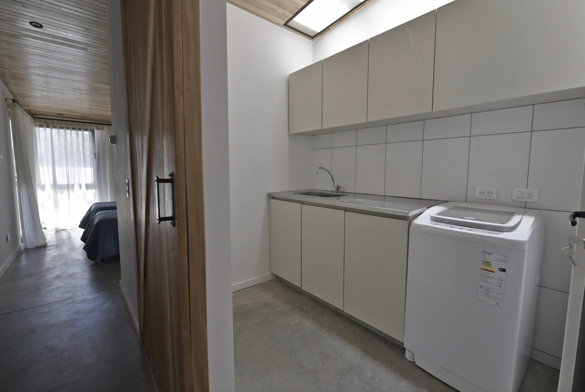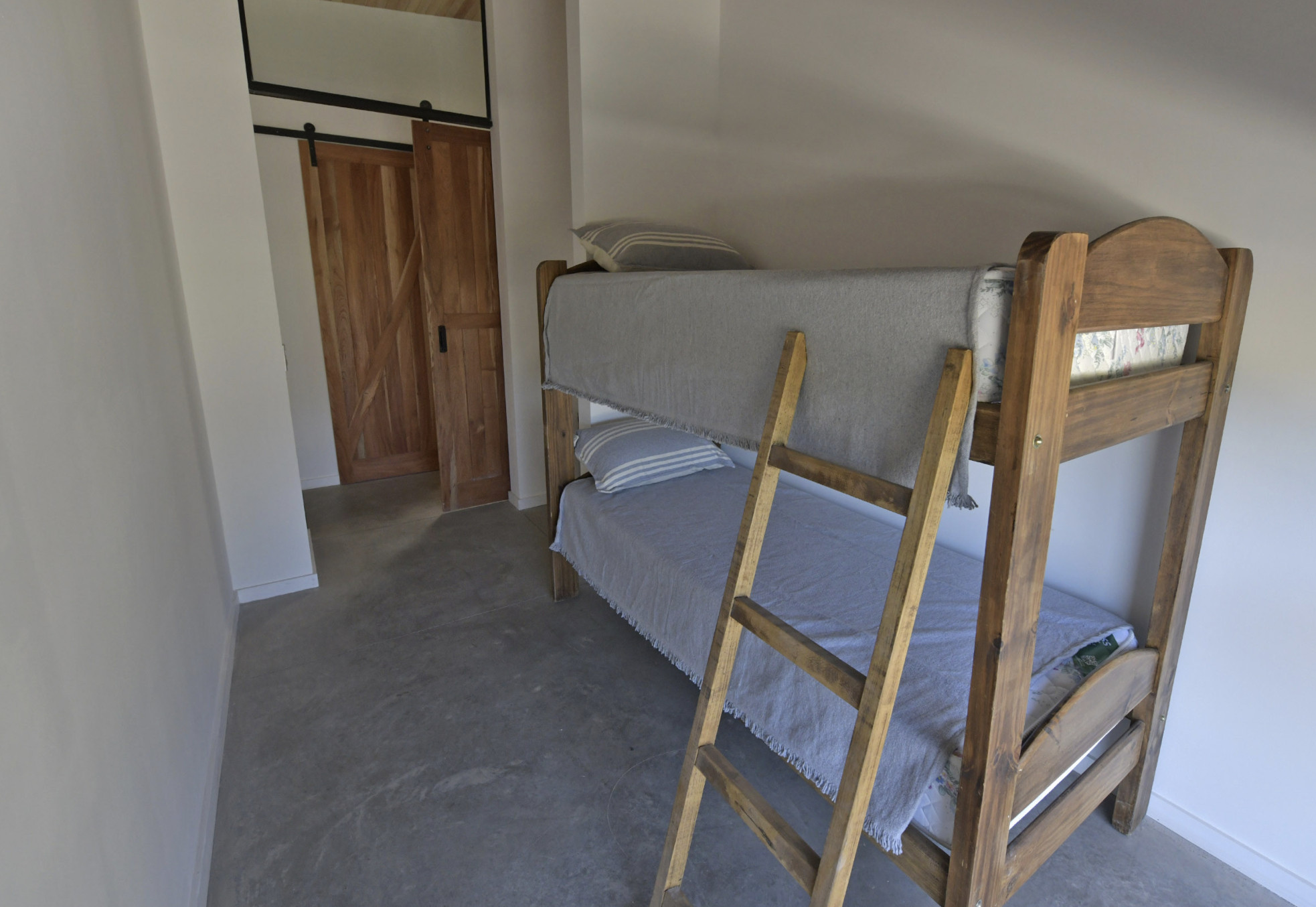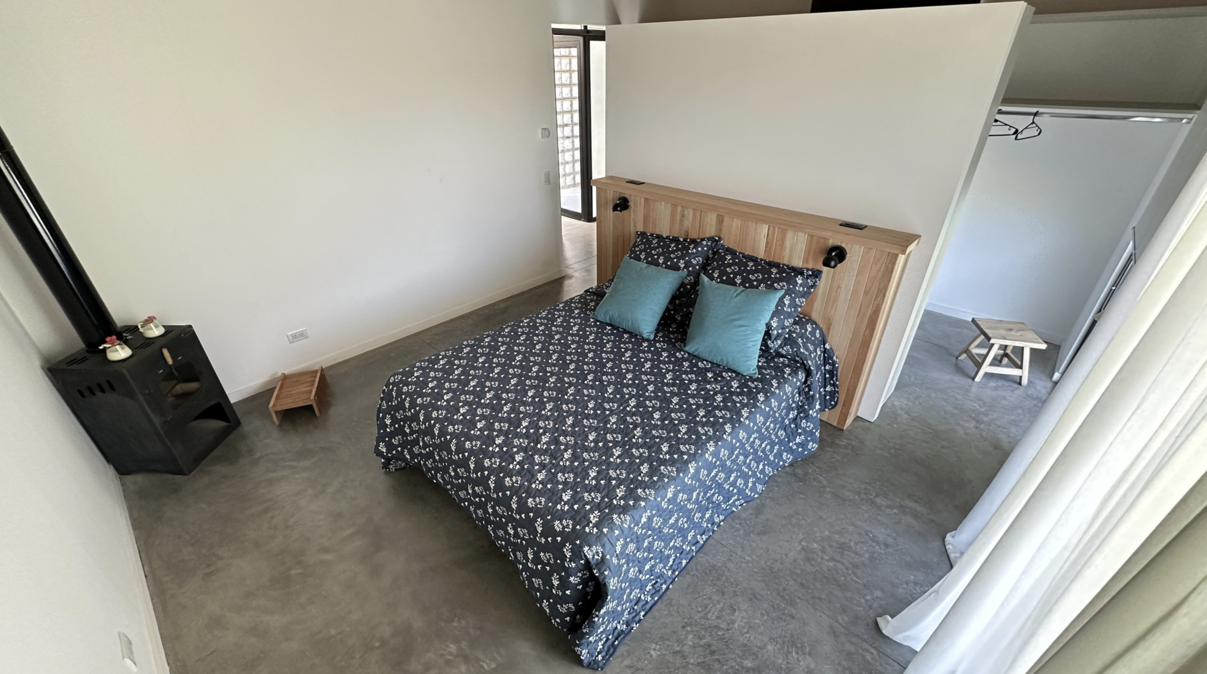 The house has 3 bedrooms: the main one en suite with a walk-in closet and wood stove in the same bedroom (and not to mention the spectacular view of the countryside). The second bedroom has 2 single beds and the third has a bunk bed style, smaller but equally comfortable and bright. Additionally, an integrated kitchen with a bar, dining room and living room with smart TV and wood stove, and a covered gallery with a grill well integrated into the house.