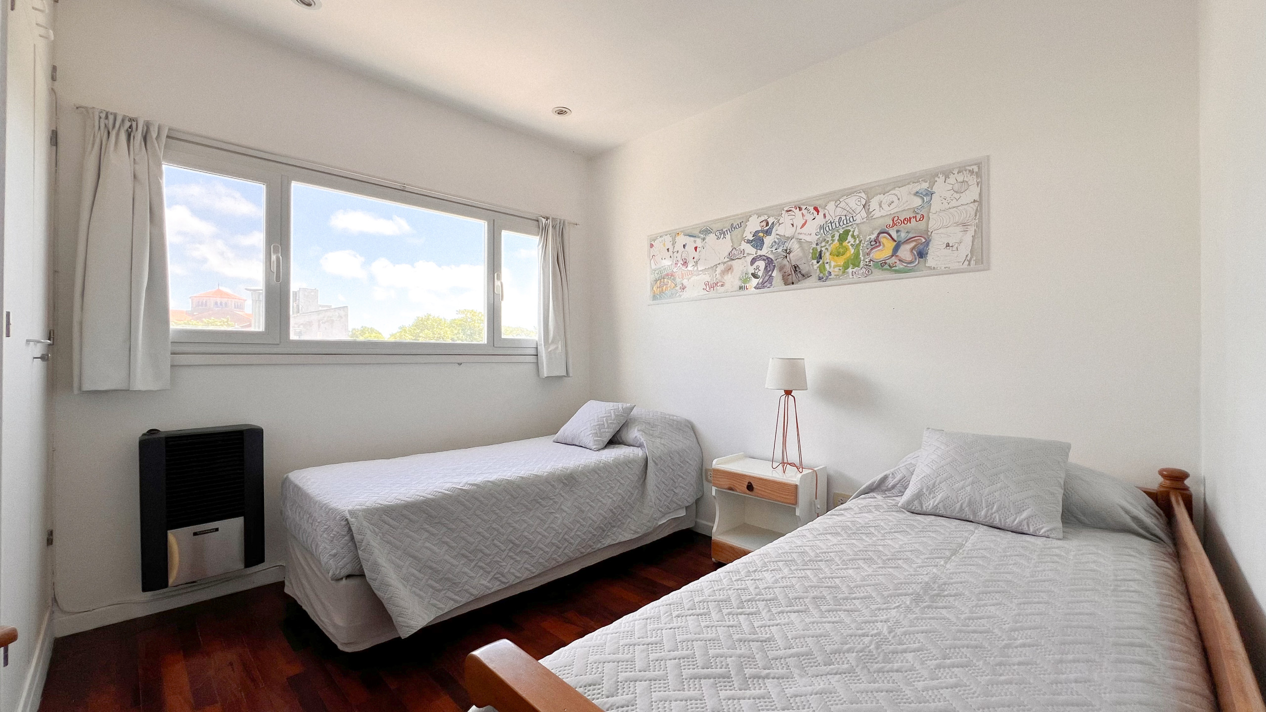 Lila Dept is located on a second floor accessible by stairs and has 3 comfortable and functional environments, with capacity to accommodate 4 people. It features a complete kitchen, living dining room with air conditioning and gas heating through heaters. It has two bedrooms: the main one with a double bed, and another with two single beds, one of them with a trundle bed, optional for a fifth guest if it's a child. Additionally, it has a compartmentalized bathroom with shower. Outside, a large terrace awaits you with a view of the square and a covered barbecue area: the ideal plan to enjoy barbecues regardless of the weather.