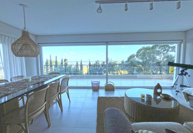 The living dining room is spacious and super bright, with large windows that offer an incredible view of the Golf and the ocean, perfect for relaxing at any time of the day.