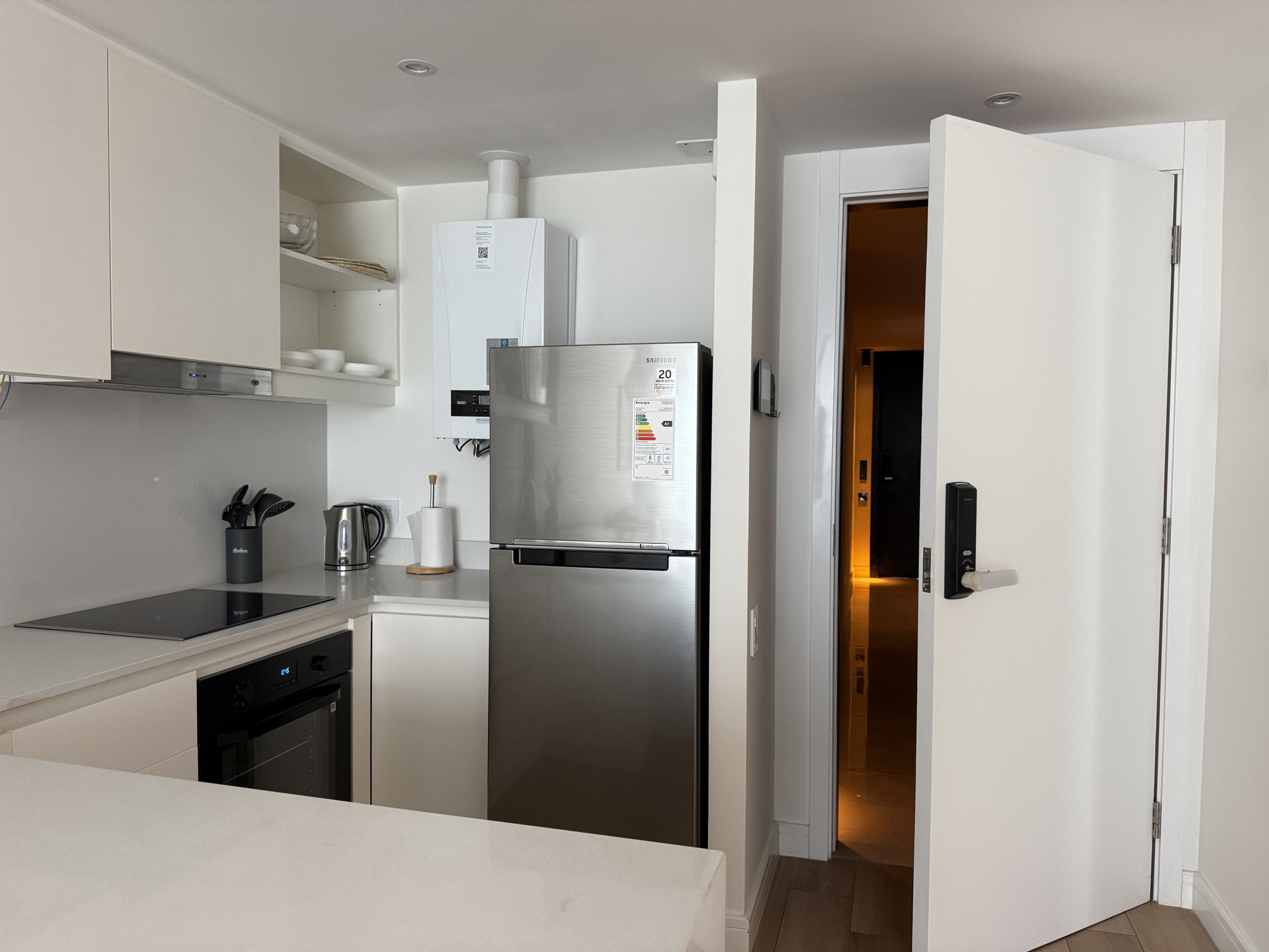 The kitchen is completely equipped and renovated with top-quality appliances. It includes a washing machine and a complete and super practical bathroom.