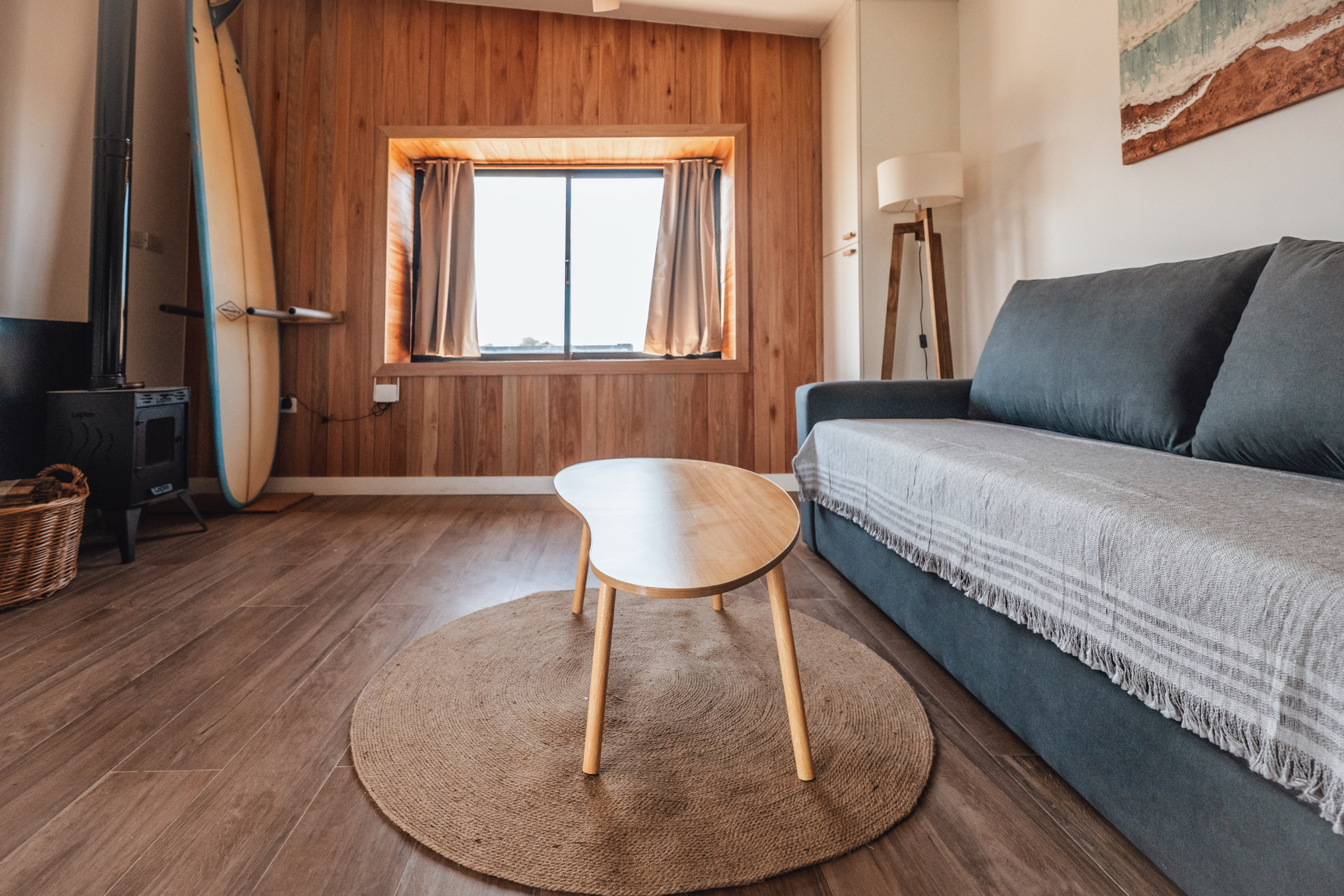 Each unit has a bright living dining room with an integrated kitchen, equipped with everything necessary to accommodate up to four people. The main bedroom has a double bed, and in the living room, a sofa bed that converts into two single beds. Additionally, each house has a full bathroom with a shower and an antechamber, practical and functional.