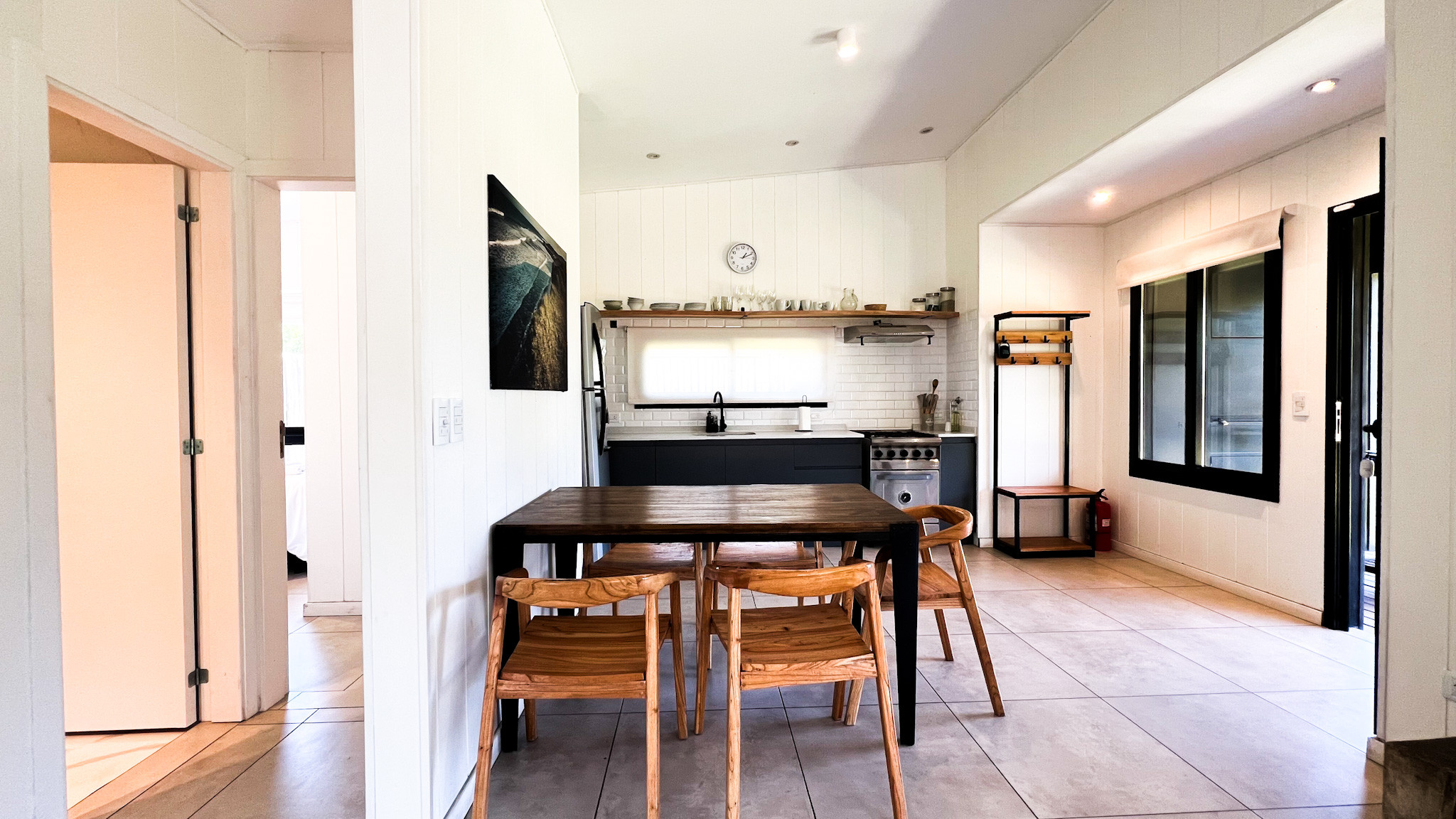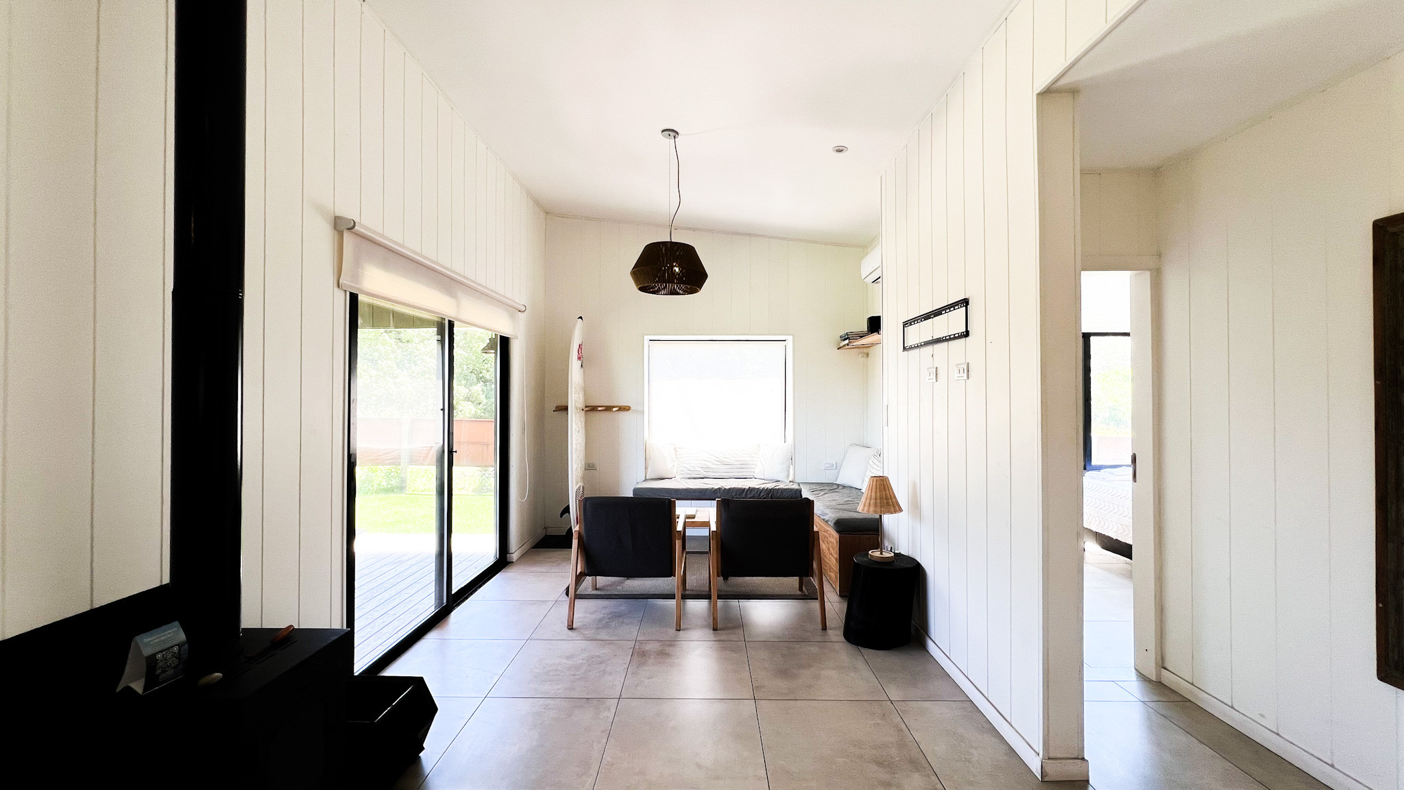 Living one block from the sea was never a better plan. Casa Molino is a brand new single-story house, designed for 4 people and created with great taste. It has a gallery with a private grill and fire pit, an integrated kitchen with a living-dining room with a super cozy wood stove, and two bedrooms: the main one with a double bed and an en-suite bathroom, and a second bedroom with two beds (which can be joined with a pillow) and a full bathroom with a shower.