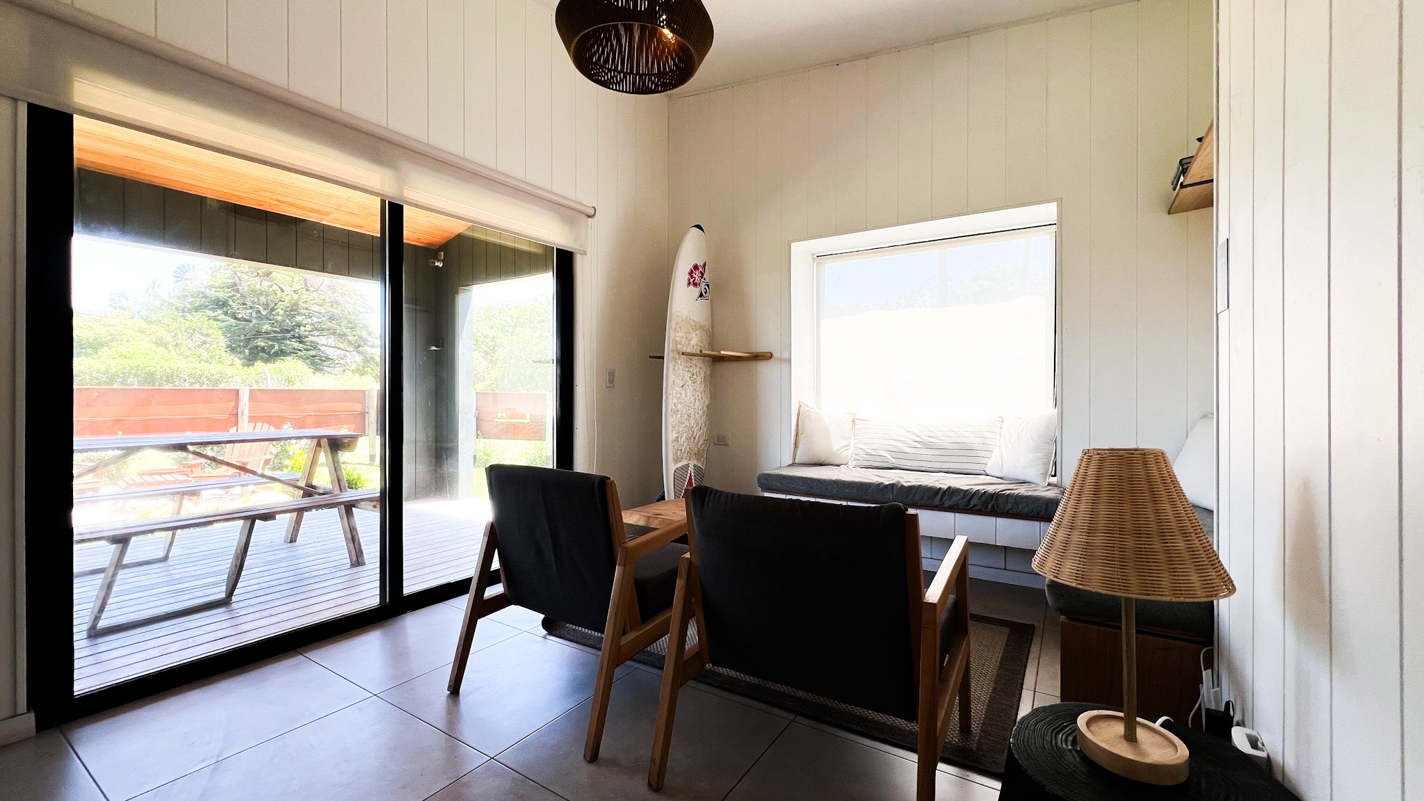 Cruz del Sur is one of the most peaceful and exclusive areas of Chapadmalal. You will be just 5 minutes by car from the most central area of Chapa, where there are businesses like Super Chapa, health food store, cafes, and fairs. Very close by you will also be able to enjoy the tea house Samay Huasi, the Trapiche Costa & Pampa Winery, and the restaurant at the Marayui Country Club. The nearby beaches —such as Luna Roja and Cruz del Sur— are wide and beautiful, and Paradise is one of our favorite spots to surf.