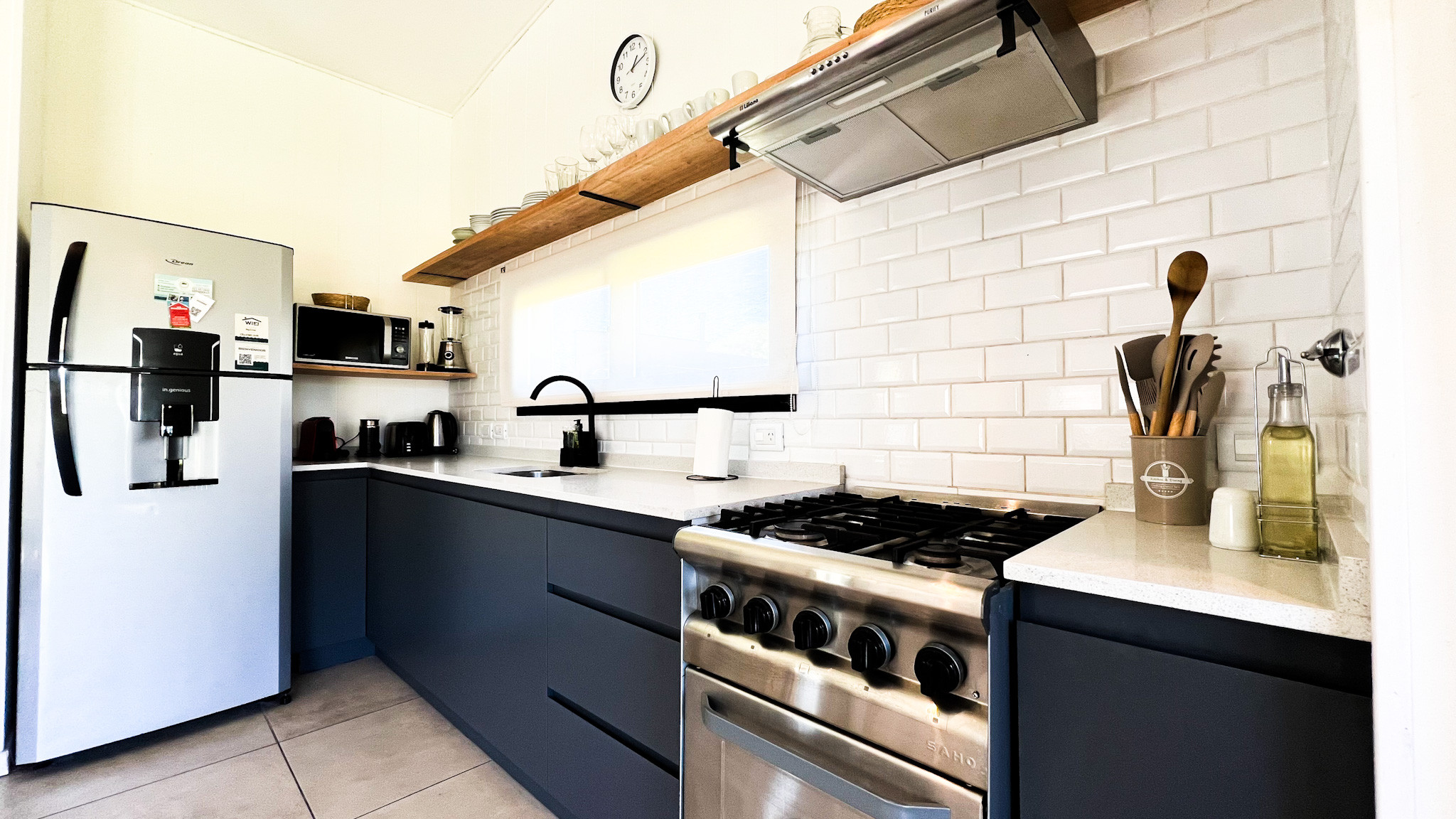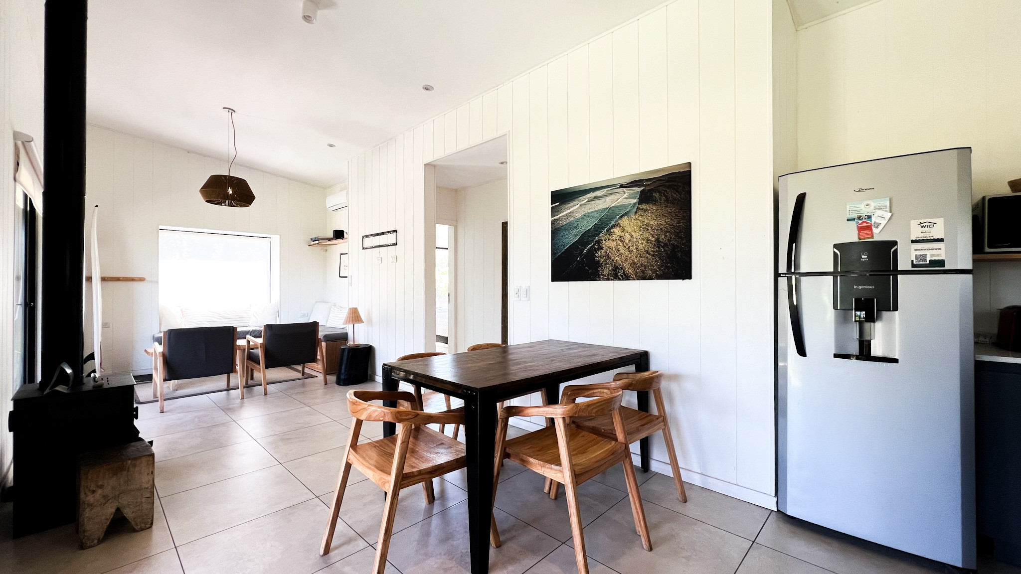 Living one block from the sea was never a better plan. Casa Paraiso is a brand new single-story house, designed for 4 people and created with great taste. It has a gallery with a private grill and fire pit, an integrated kitchen with a living-dining room with a super cozy wood stove, and two bedrooms: the main one with a double bed and an en-suite bathroom, and a second bedroom with two beds (which can be joined with a pillow) and a full bathroom with a shower.
