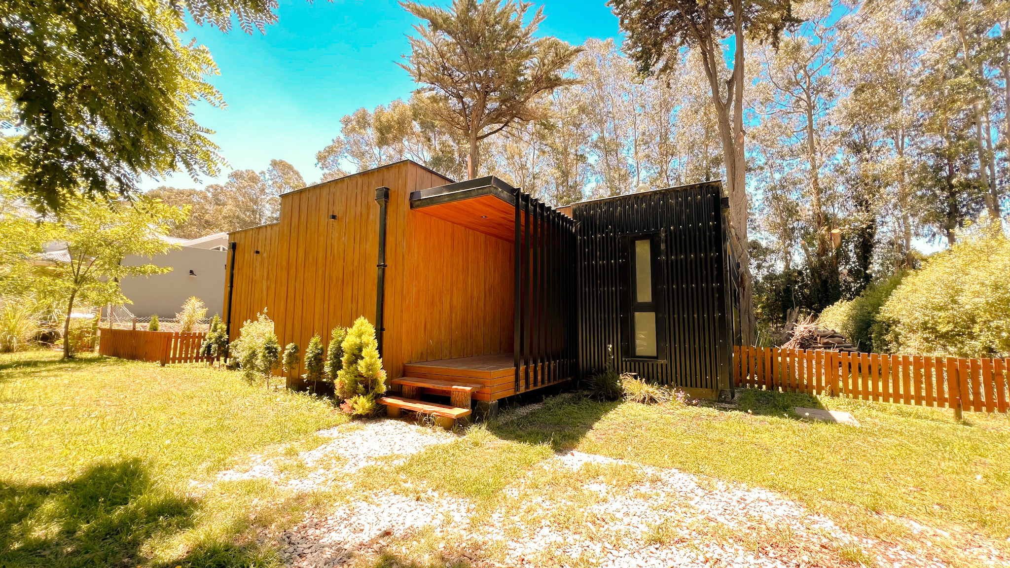 Pancha's House invites us to relax and above all: rest. This totally wooden house is designed for 4 people and is located in the Closed Neighborhood Barrancas de San Benito. The neighborhood is located at the height of Lobos Chapadmalal and has 24-hour security, amenities such as tennis and soccer courts for guests' use, children's games, and open spaces full of green with spectacular sunsets that we always recommend approaching the neighborhood stream to see.