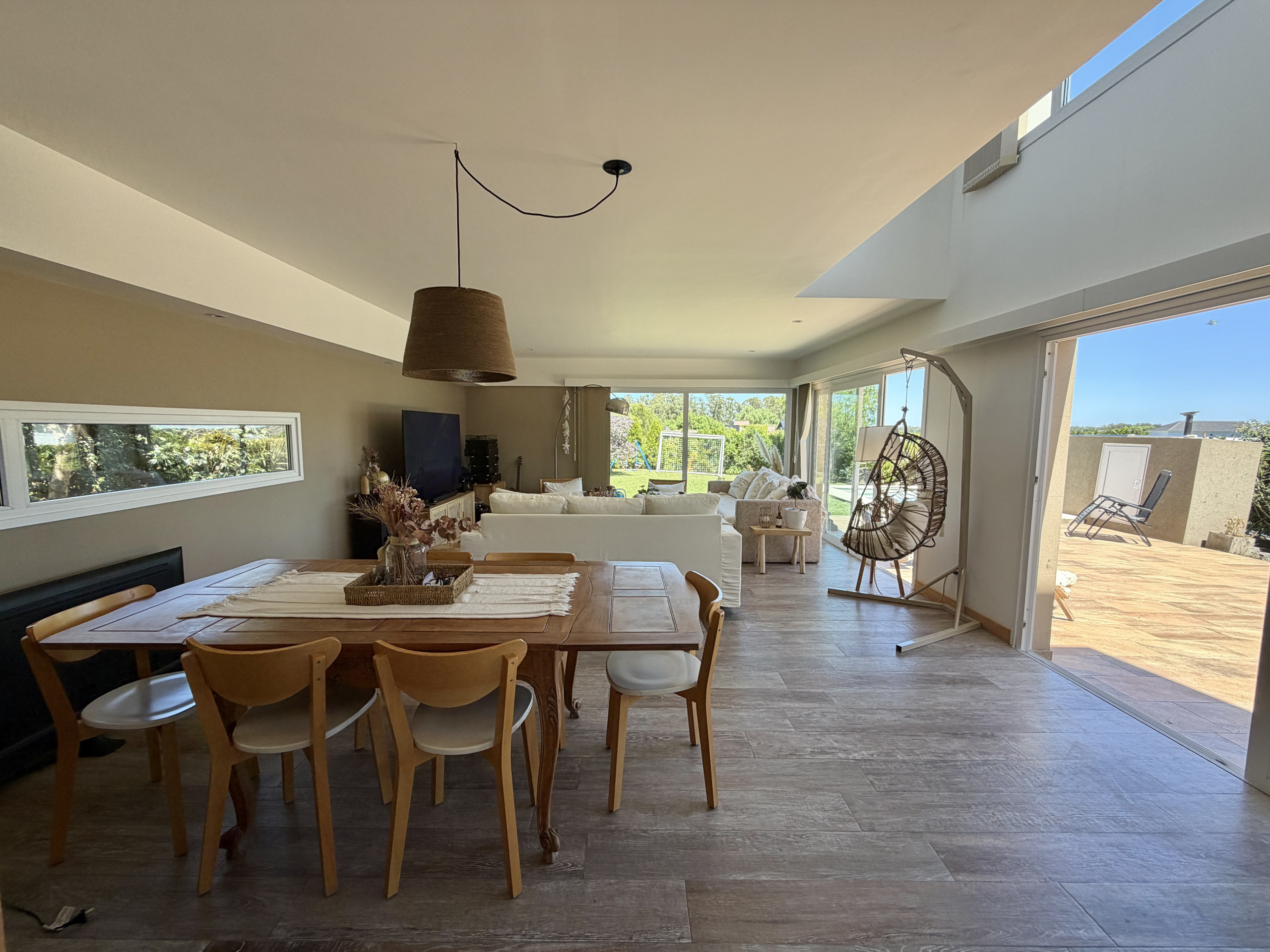 Designed for 6 people, the house has a living dining room with an integrated kitchen, ideal for sharing moments with family or friends. It has 3 bedrooms: the main one en suite with a double bed, another with a double bed, and a third with two single beds, all with air conditioning. Additionally, it has 2 full bathrooms and a reception toilet, plus an indoor grill for your barbecues.