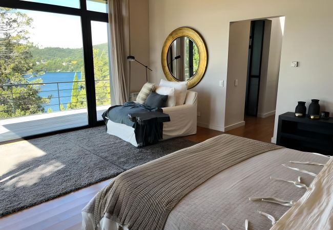 The house in San Carlos de Bariloche has 5 bedrooms and has capacity for 10 people. The house is homely, is spacious, and is 5,382 ft². The property is located right next to the beach. It hasmountain and lakeviews. The property is located 9.32 mi from the ski resort, 11.19 mi from the city, 15.54 mi from the airport. The house is situated in a charming neighborhood surrounded by the forest.The accommodation is equipped with the following items: garden, outdoor furniture, fenced plot, terrace, washing machine, dryer, barbecue, fireplace, balcony, gym / fitness centre, alarm, hot tub, central heating, private swimming pool, open-air parking in the same building, 1 TV.In the gas open plan kitchen, refrigerator, microwave, oven, freezer, dishwasher, dishes/cutlery, kitchen utensils, coffee machine, toaster, kettle and juicer are provided.